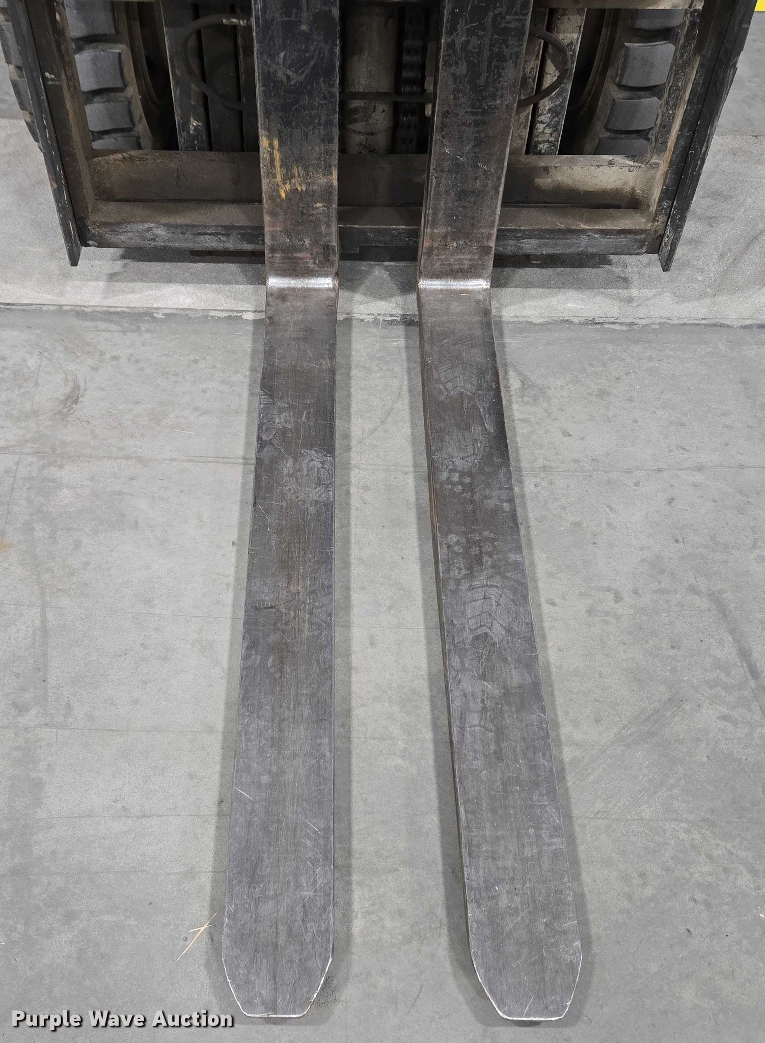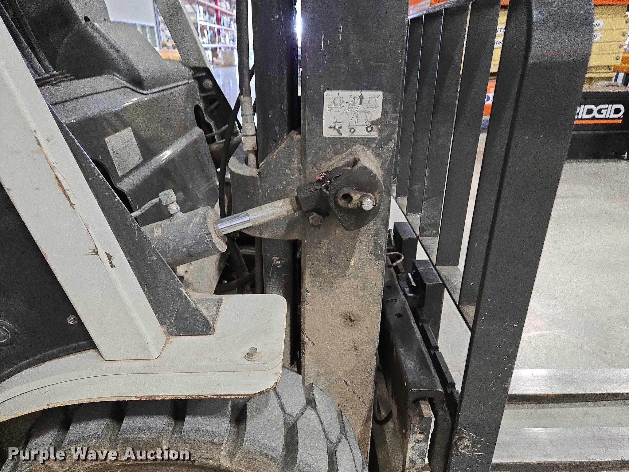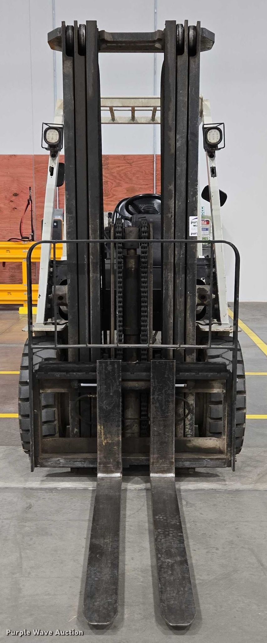 2015 Nissan PF30LP forklift. Hours: 3,161 on meter, Serial: UG1F2-9L4322, Unit #: SFS2253. Engine GCT ENFXB02.548D, Displacement: 2.5L, Cylinders: 4, Fuel type: LPG LP bottle: Not included. Transmission Automatic. Operators station OROPS. Features Maximum lift capacity: 5,200 lbs, Maximum lift height: 187", Collapsed mast height: 90", Mast stages: 3, Side shift, Mast tilt, Fork length: 48". Tires Front: 28x9-15, Rear: 6.50-10, Solid. Ferguson. Groveport, OH 43125