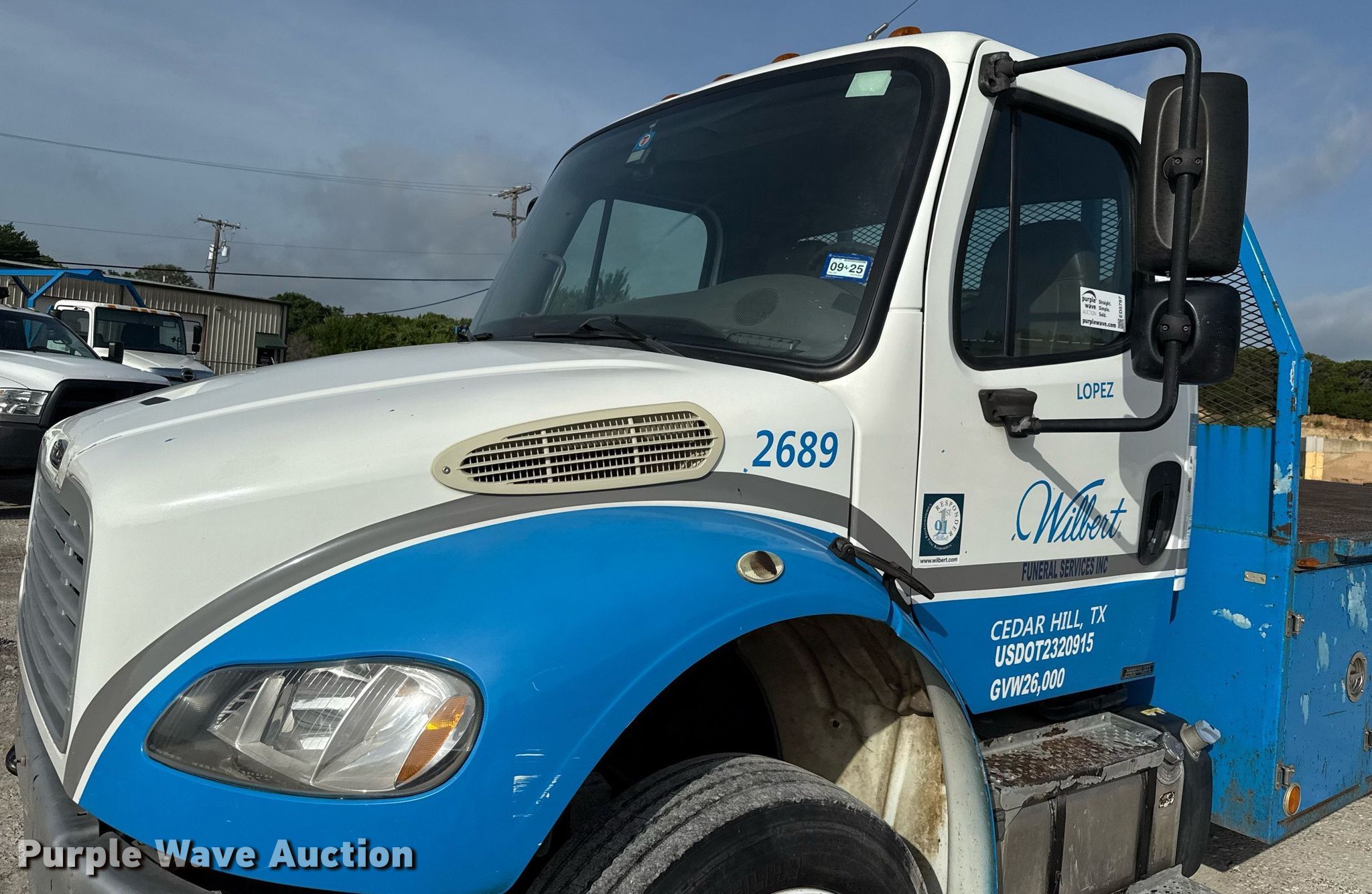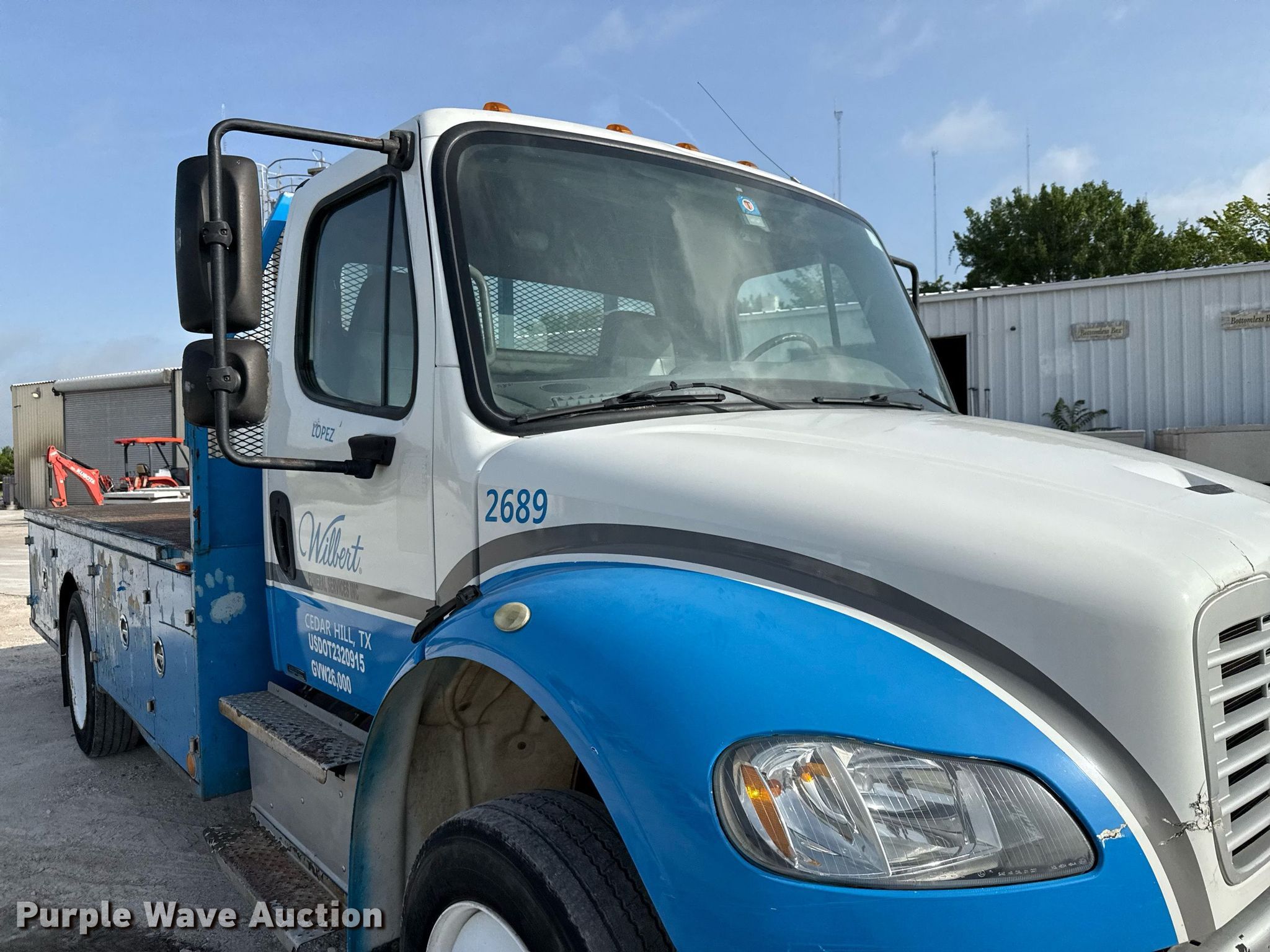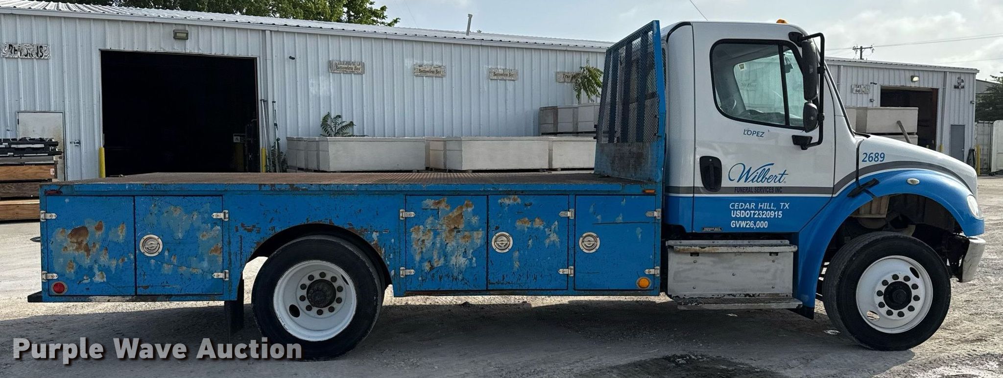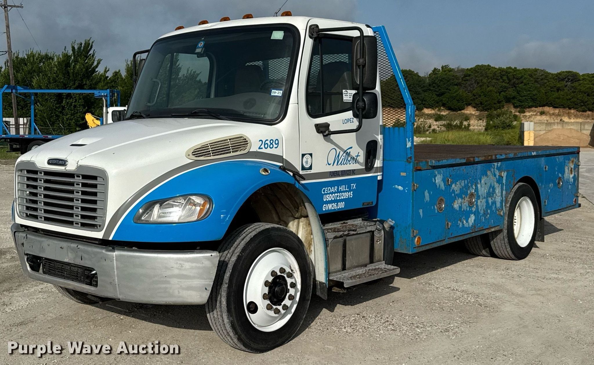 Purple Wave is selling a used Flat Bed Truck in Texas. This item is a 2014 Freightliner Business Class M2 flatbed truck with the following: Miles: 202,513 on odometer, VIN: 1FVACWDU0EHFW2850, Unit #: 2689