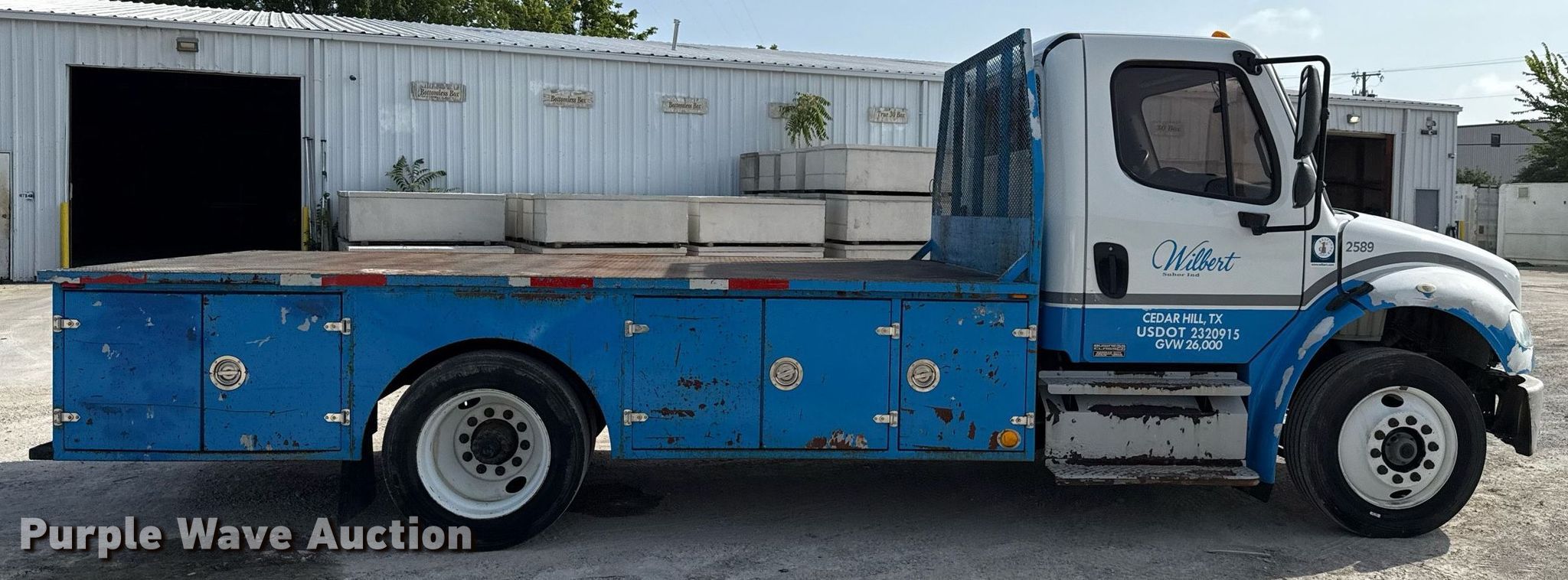 Purple Wave is selling a used Flat Bed Truck in Texas. This item is a 2012 Freightliner Business Class M2 flatbed truck with the following: Miles: 267,952 on odometer, VIN: 1FVACWDU8CHBV5775, Unit #: 2589