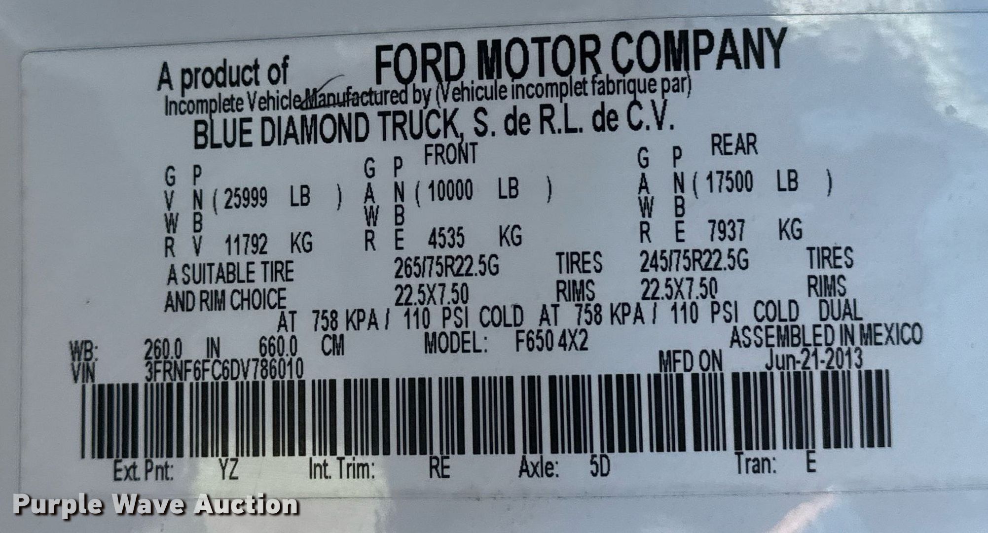 - VIN: 3FRNF6FC6DV786010
