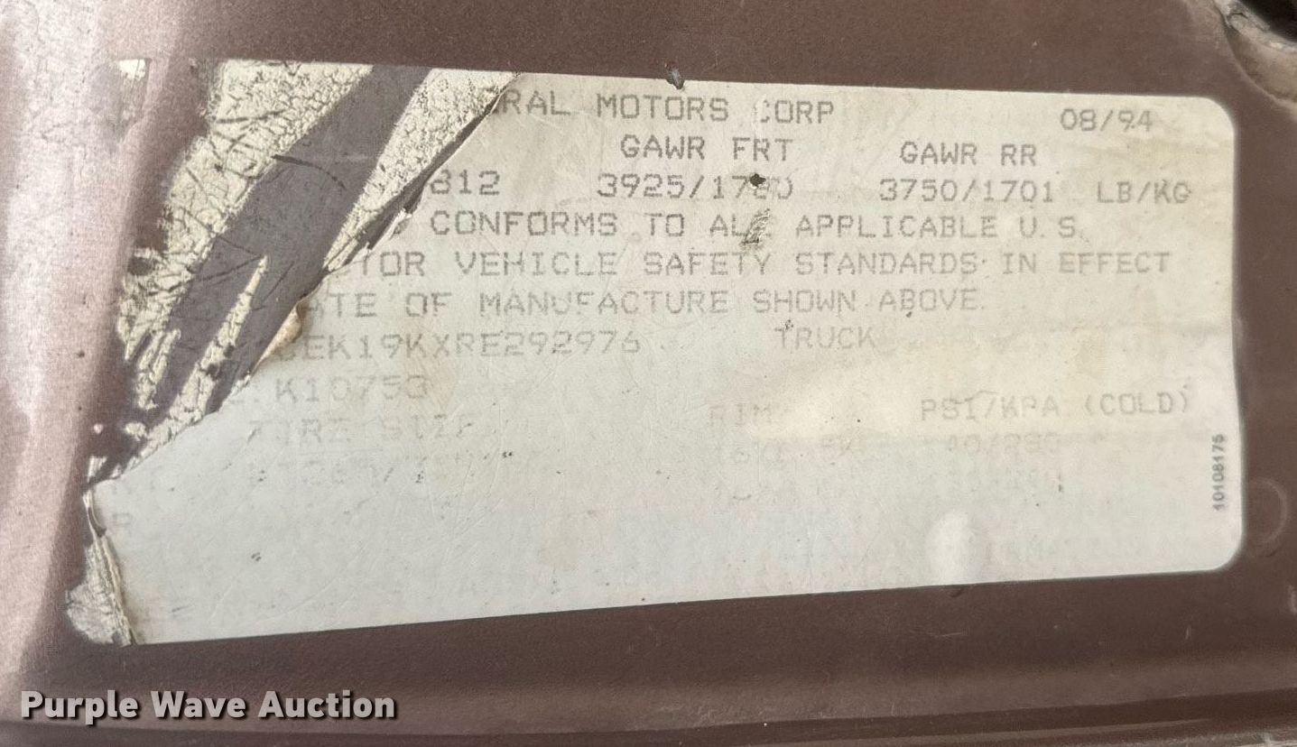 Purple Wave is selling a used 1/2 Ton Pickup or Van in Kansas. This item is a 1994 Chevrolet K1500 with the following: Miles: 302,790 on odometer, VIN: 1GCEK19KXRE292976