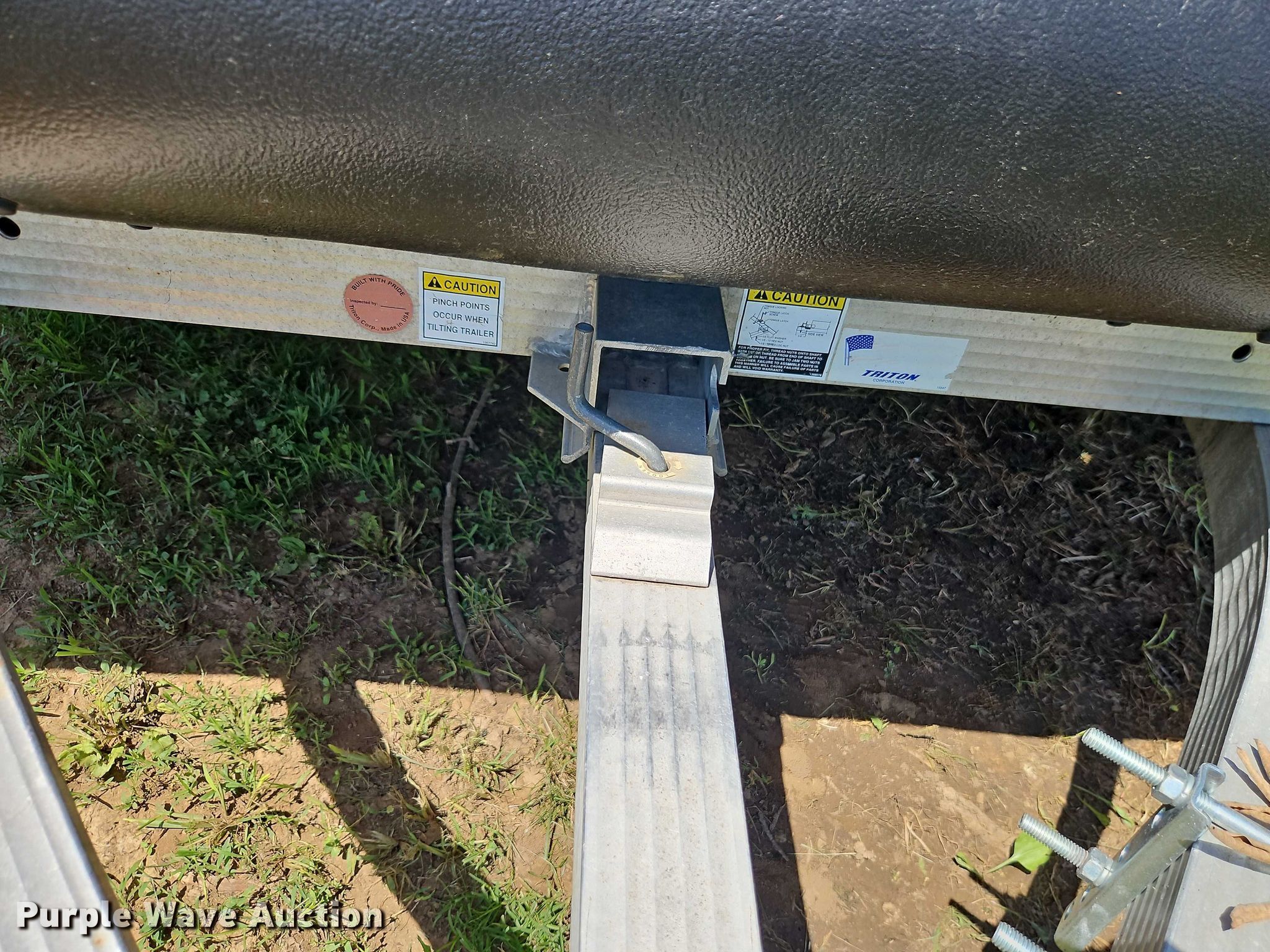 2007 Triton Triton utility trailer. VIN: 4TCSS11027HX43460. Dimensions Overall: 14' 6" L x 101" W, Deck: 10' L x 101" W, Deck height: 20". Features Deck type: Wood. Chassis Ball hitch: 2", Landing gear: Single, Suspension: Torsion, GVWR: 1,880 lbs. Tires Steel wheels, Size: 18.5x8.5-8. Missouri title. Title distribution may be delayed up to 14 days from verification of funds. Mvp Autoglass LLC. Lowry City, MO 64763