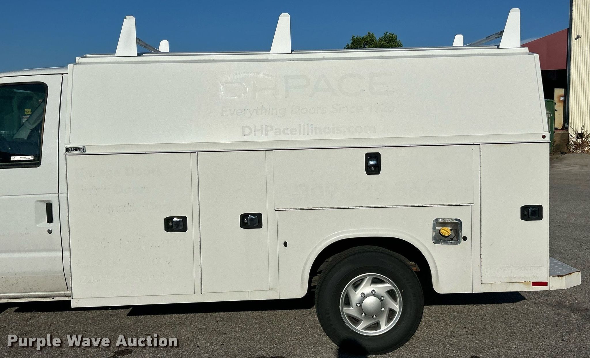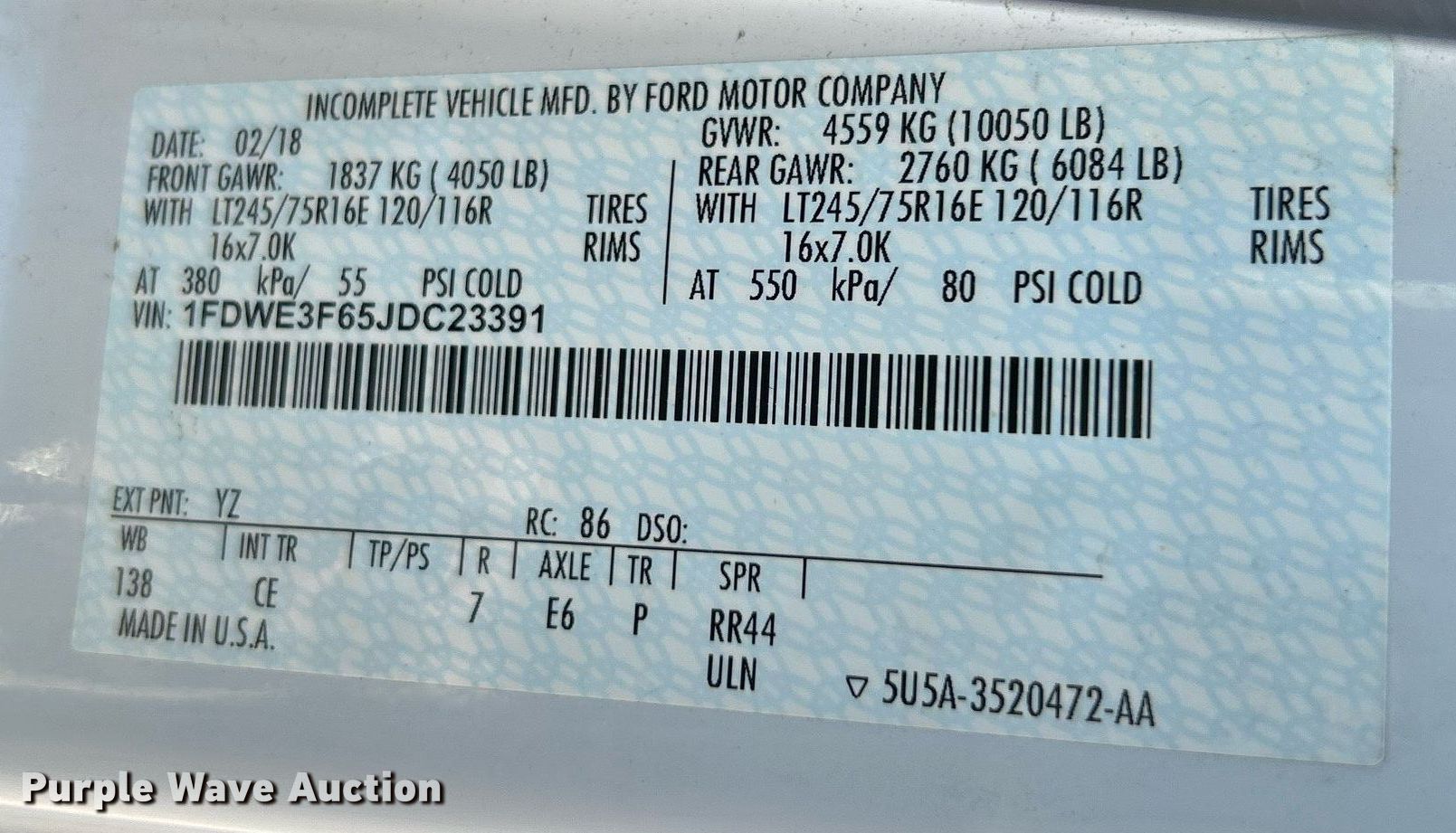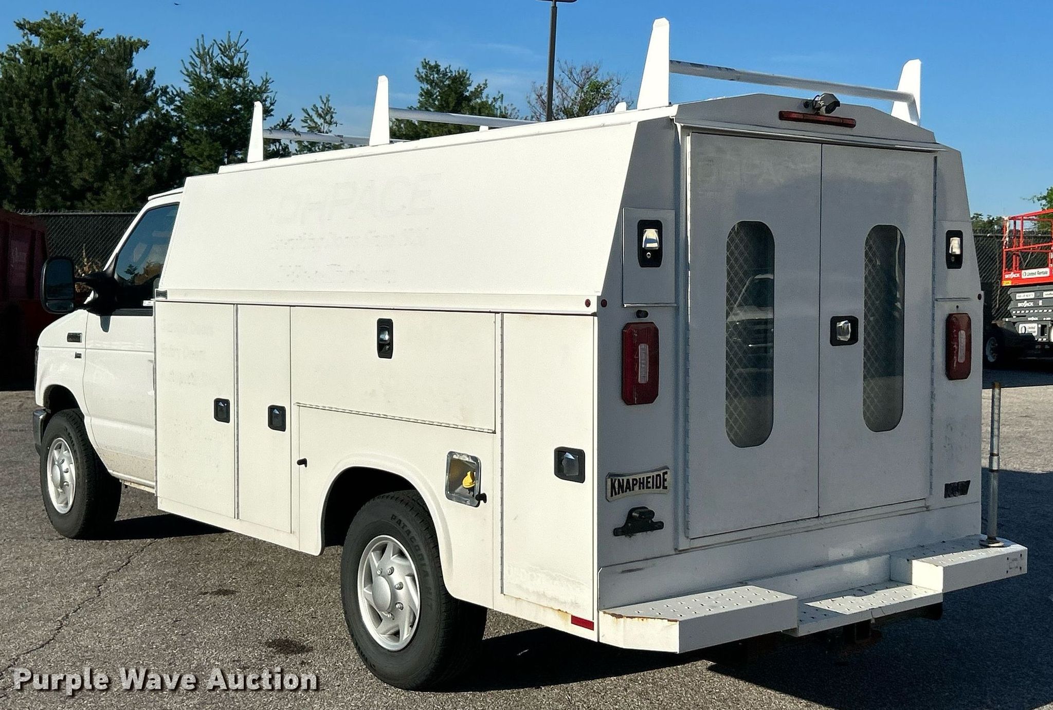 2018 Ford E350 Super Duty utility van. Miles: 308,038 on odometer, VIN: 1FDWE3F65JDC23391. Engine Displacement: 6.2L V8 DOHC, Cylinders: 8, Fuel type: Gas. Transmission Automatic. Interior AC, Heat, Power windows, Power locks, Cruise control. Features Utility bed Knapheide, 10' 9" L x 83" W. Tires Size: 245/75R16. Notes Dash warning indicator: Check engine, TPMS, Windshield chipped or cracked. Illinois title. Title distribution may be delayed up to 14 days from verification of funds. DH Pace Company, Inc.. St. Louis, MO 63146