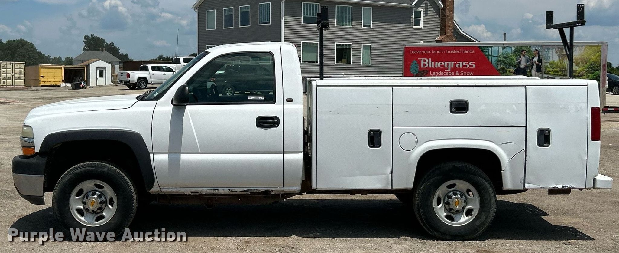 This 2002 Chevrolet Silverado 2500HD utility bed pickup truck will sell to the highest bidder regardless of price.