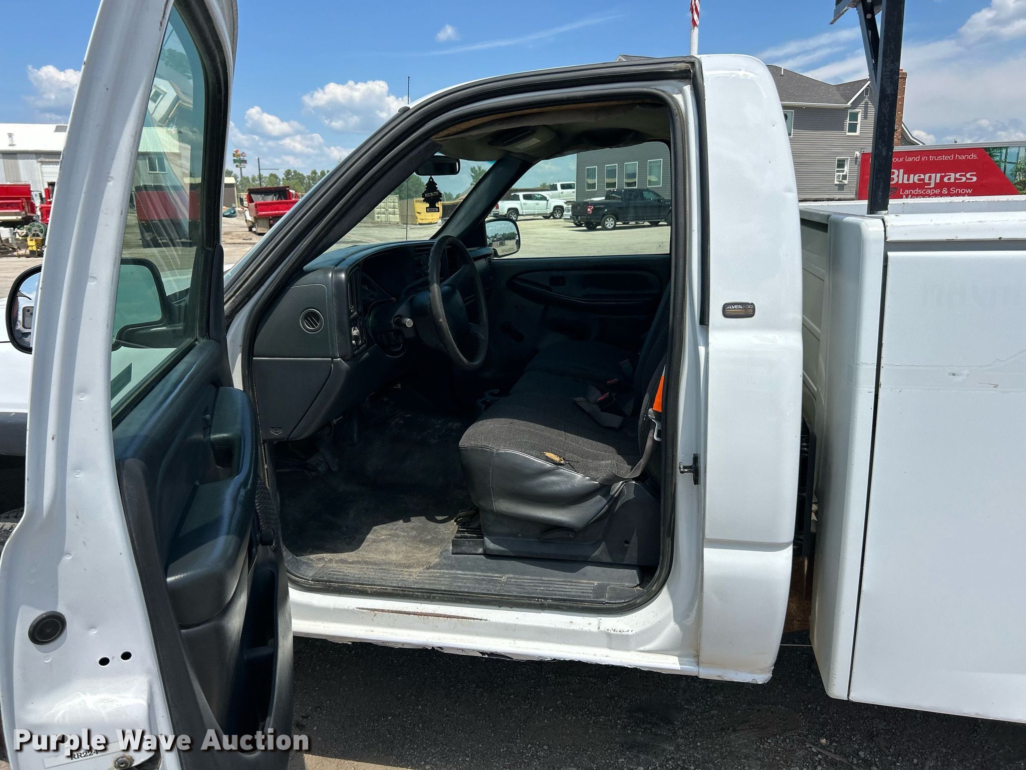 2002 Chevrolet Silverado 2500HD utility bed pickup truck. Miles: 241,798 on odometer, VIN: 1GBHC24U12E281786. Engine Displacement: 6.0L V8 OHV, Cylinders: 8, Fuel type: Gas. Transmission Automatic. Interior AC, Heat. Features Utility bed 8' 8" L x 78" W. Tires Size: 245/75R16. Notes Dash warning indicator: ABS, Brake, Possible AC issues, may need charged. Missouri title. Title distribution may be delayed up to 14 days from verification of funds. Bluegrass Landscape & Snow Management. Bridgeton, MO 63044
