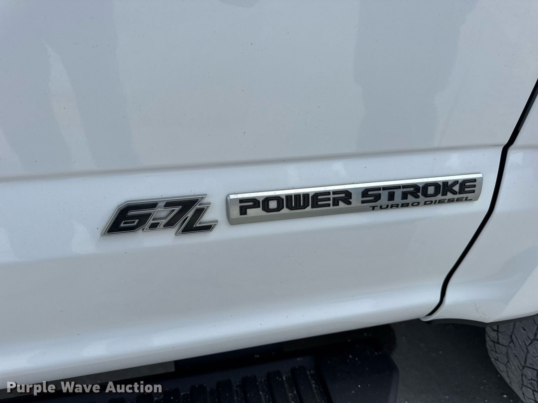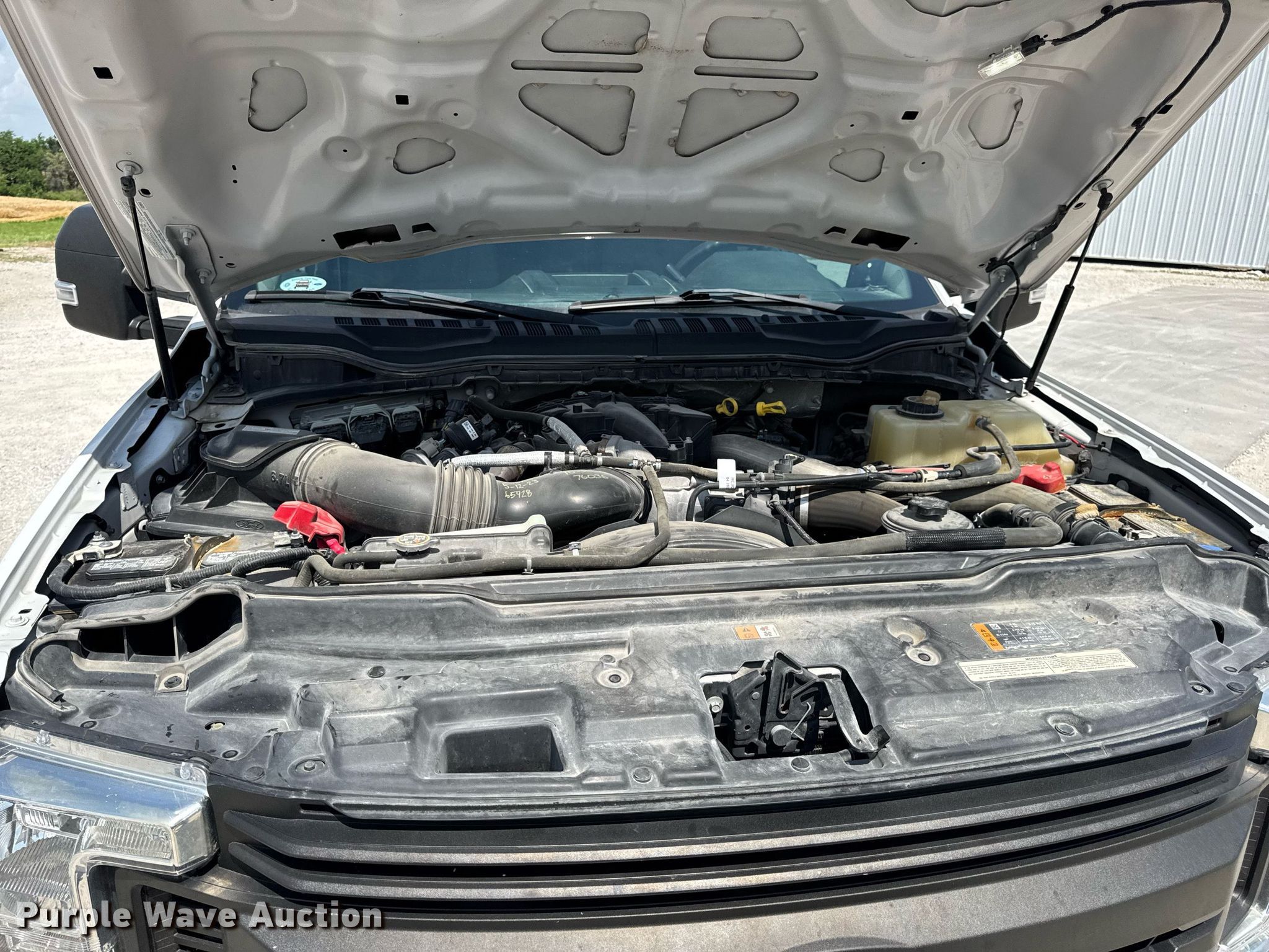 2019 Ford F350 Super Duty XL SuperCab flatbed pickup truck. Miles: 106,622 on odometer, Hours: 3,883 on meter, VIN: 1FD8X3HT7KEF12967. Engine Displacement: 6.7L V8 SOHC, Cylinders: 8, Fuel type: Diesel. Transmission Automatic, Four wheel drive. Interior AC, Heat, Heated mirrors, Power windows, Power locks, Cruise control, Auxiliary controls, Brake controller. Features Flatbed 9' 3" L x 96" W, Hitch: Gooseneck. Tires Size: LT245/75R17. Missouri title. Title distribution may be delayed up to 14 days from verification of funds. Sugar Creek Enterprises. Moberly, MO 65270