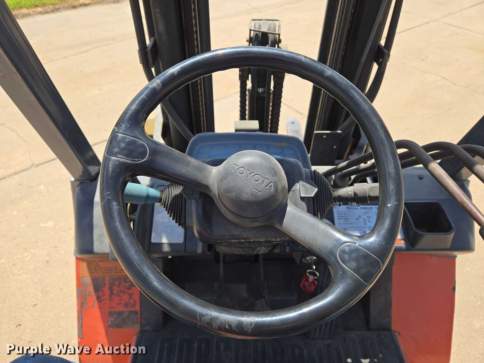 Purple Wave is selling a used Cushion Tire or Pneumatic Forklift in Kansas. This item is a 2001 Toyota 7FGU25 forklift with the following: Hours: 14,841 on meter, Serial: 64135