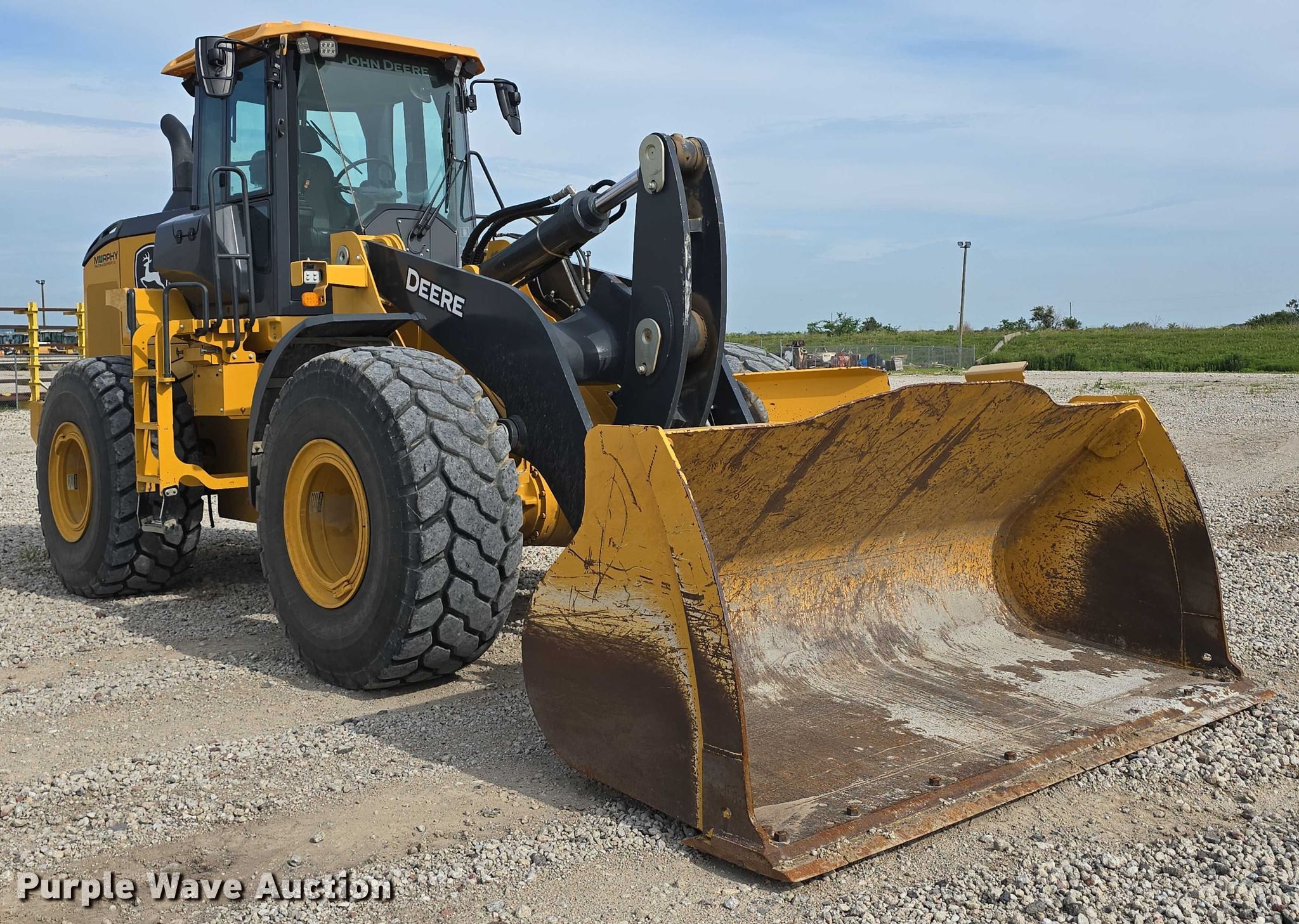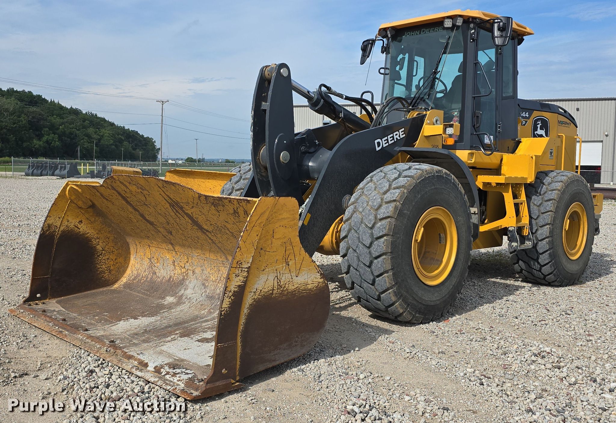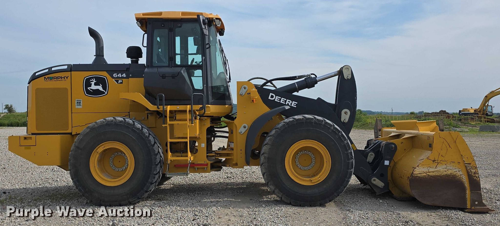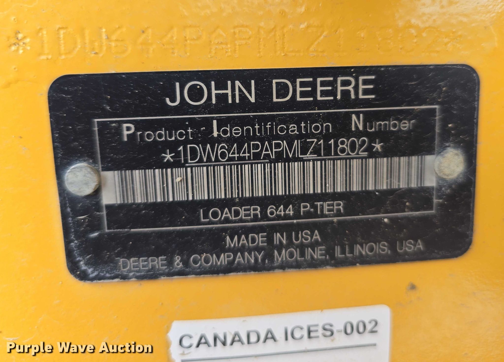 Purple Wave is selling a used Wheel Loader in Iowa. This item is a 2021 John Deere 644 P-Tier wheel loader with the following: Hours: 2,267 on meter, Serial: 1DW644PAPMLZ11802, Unit #: 2695