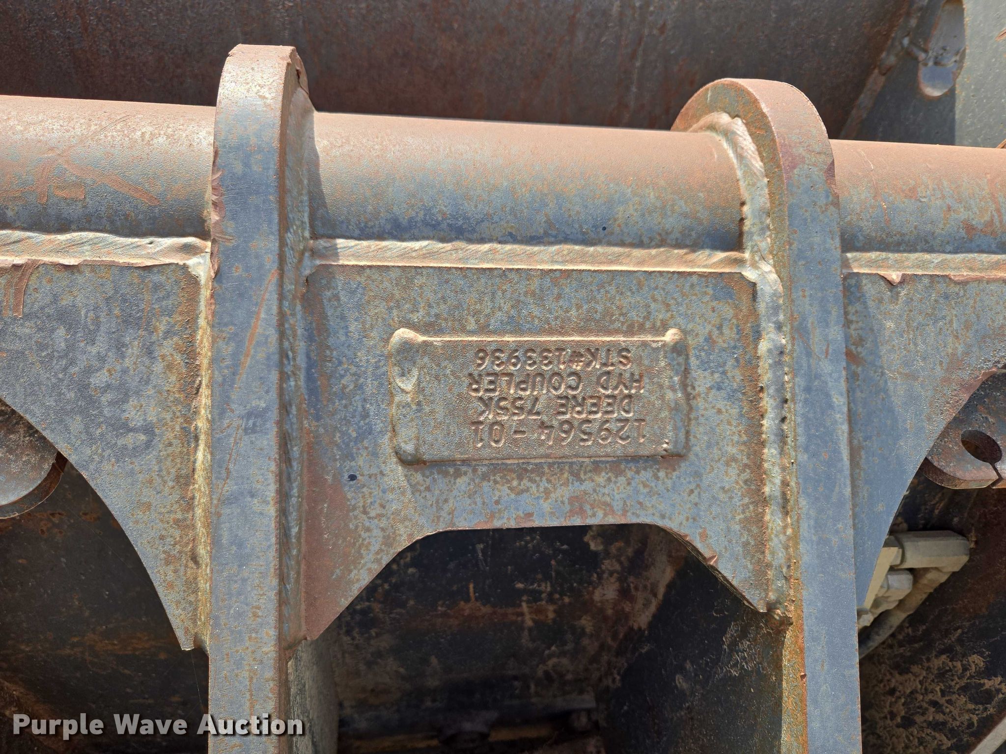 2017 John Deere 755K track loader. Hours: 1,651 on meter, Serial: 1T0755KXTHE314801, Unit #: E079. Engine John Deere 6068HT084B, Displacement: 6.8L, Cylinders: 6, Fuel type: Diesel. Transmission Hydrostatic. Operators station Enclosed cab, AC, Heat, Bucket controls: Joystick. Features Auxiliary hydraulics: Front, Quick coupler: Hydraulic, Bucket Tag, Width: 111", Cutting edge: Bolt-on, Teeth: 8, Forks Length: 72". Tracks Width: 22", Grouser pads: Double. Neuvirth Construction. Crescent, IA 51526