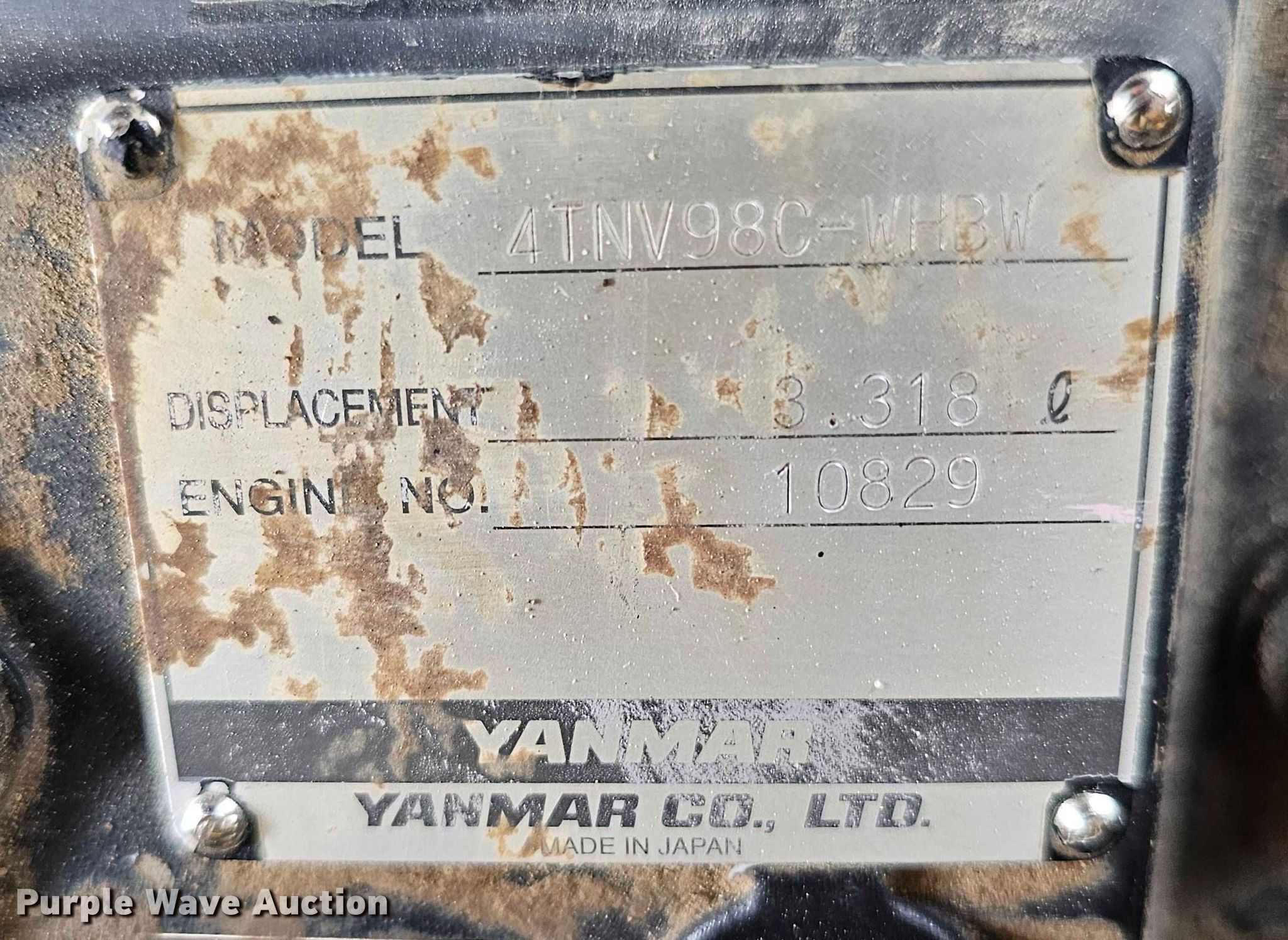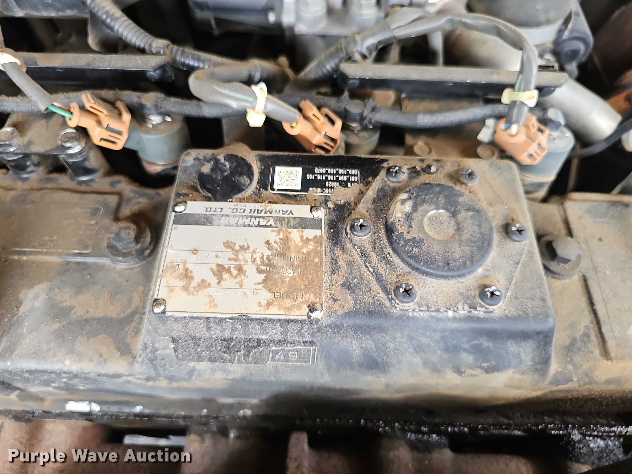 2014 John Deere 85G mini excavator. Hours: 3,574 on meter, Serial: 1FF085GXAEJ017653, Unit #: EO56. Engine Yanmar 4TNV98C-WHBW, Serial: 10829, Displacement: 3.318L, Cylinders: 4, Fuel type: Diesel. Transmission Hydrostatic, Two speed travel. Operators station Enclosed cab, AC, Heat, Pattern changer, Electronic Monitoring System panel. Features Auxiliary hydraulics Standard, Counter weights, Backfill blade Width: 86.5", Boom Swing, Stick Stick length: 7', Quick coupler: Hydraulic, Bucket CP, Width: 35.5", Teeth: 6. Tracks Width: 17.5", Steel, Track pads: Rubber. Neuvirth Construction. Crescent, IA 51526