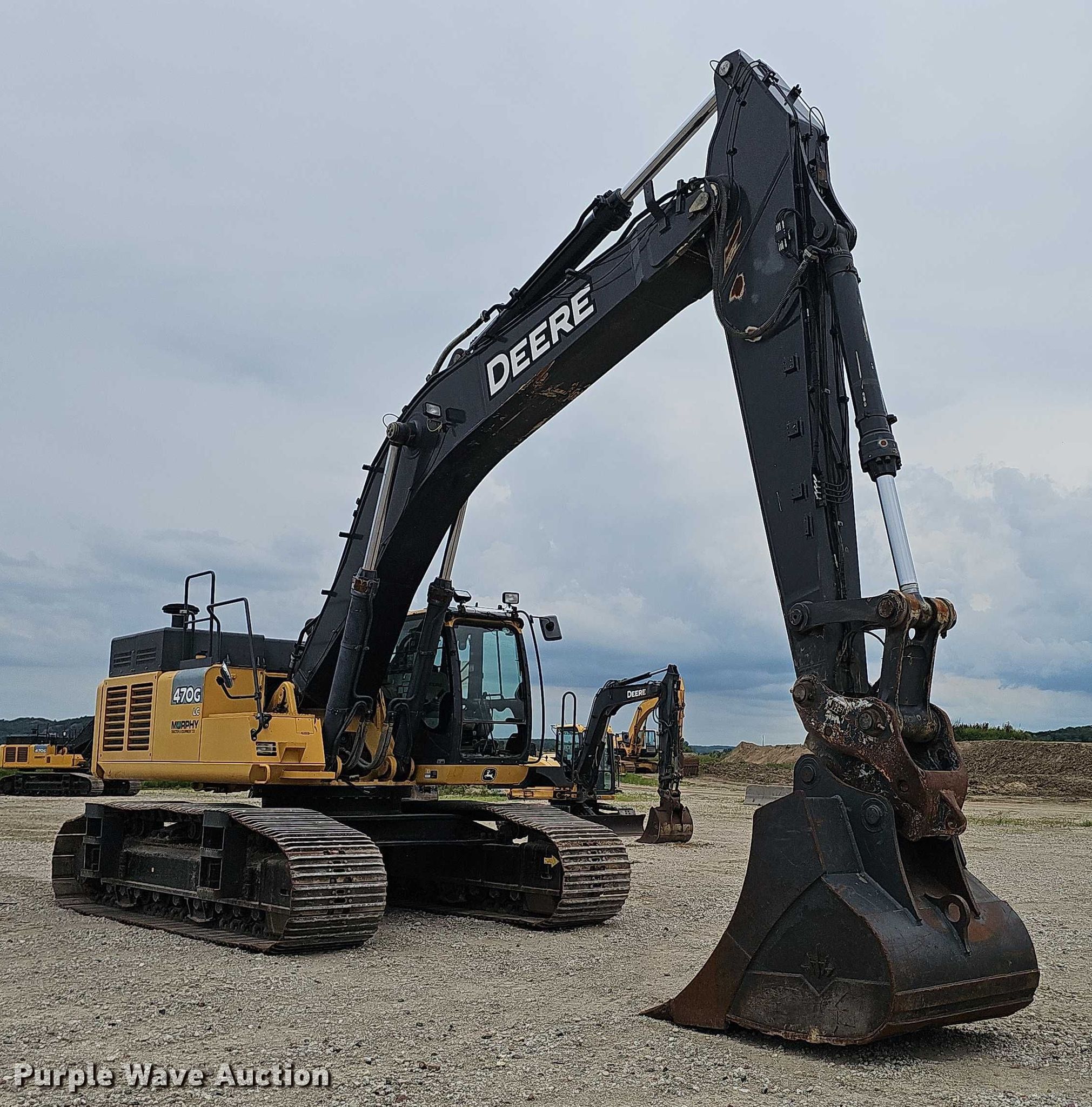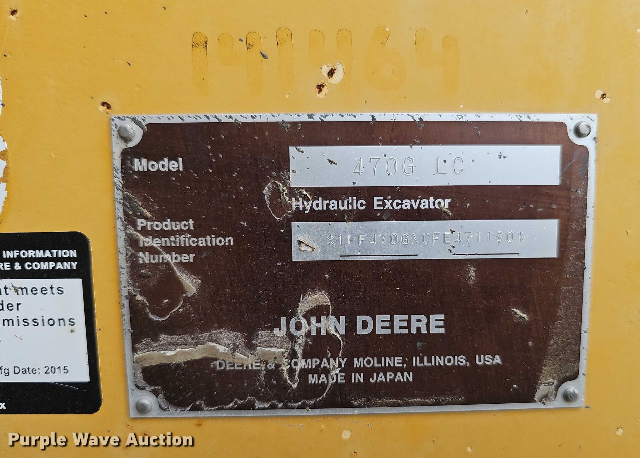 Purple Wave is selling a used Hydraulic Excavator in Iowa. This item is a 2016 John Deere 470G LC excavator with the following: Hours: 5,245 on meter, Serial: 1FF470GXCFE471190, Unit #: E103