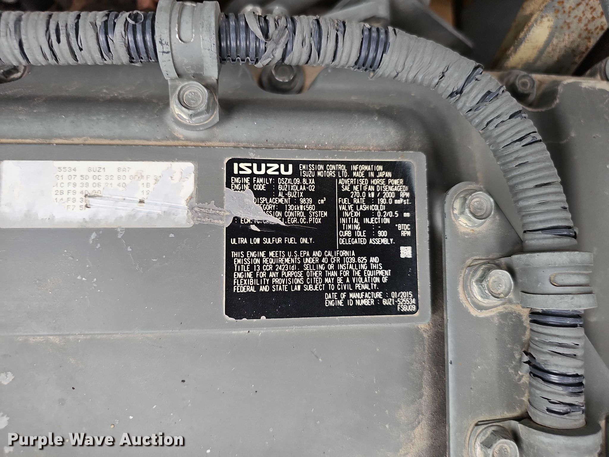 2016 John Deere 470G LC excavator. Hours: 5,245 on meter, Serial: 1FF470GXCFE471190, Unit #: E103. Engine Isuzu AL-6UZ1X, Cylinders: 6, Fuel type: Diesel, kW: 270. Transmission Hydrostatic, Two speed travel. Operators station Enclosed cab, AC, Heat, Backup camera, Pattern changer. Features Auxiliary hydraulics Standard, Counter weights, Removable, Auto lube, Boom Standard, Stick Stick length: 12' 7", Quick coupler: Hydraulic JRB, Bucket Crown Fabrication, Width: 60", Teeth: 6. Tracks Width: 35.5", Steel, Grouser pads: Triple. Notes Glass missing. Neuvirth Construction. Crescent, IA 51526
