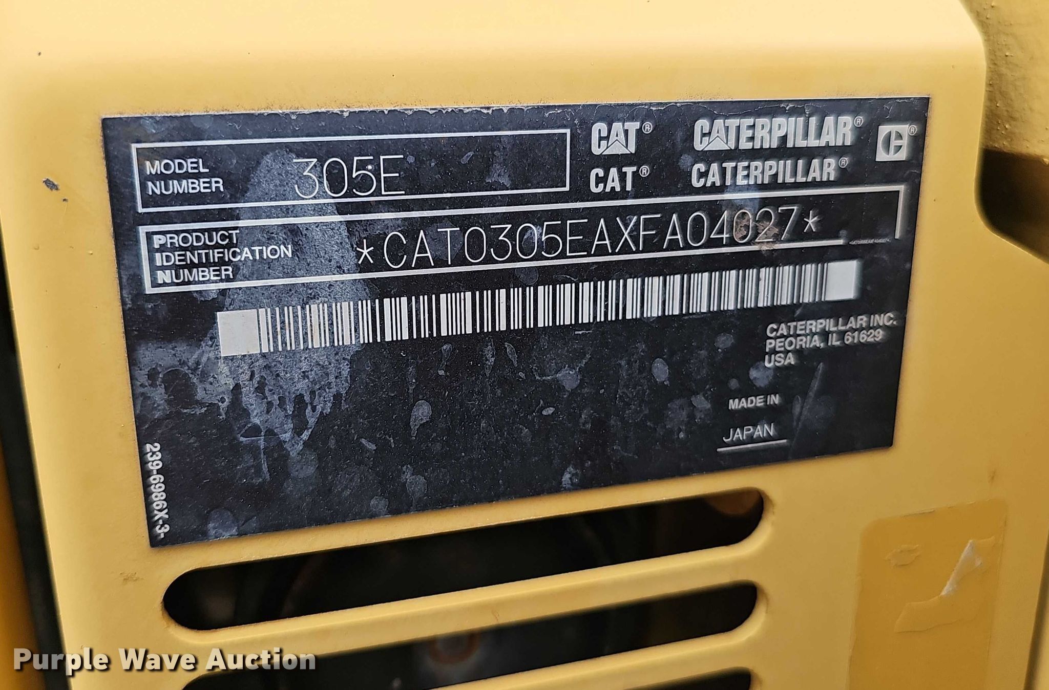 Purple Wave is selling a used Mini Excavator in Iowa. This item is a 2014 Caterpillar 305E CR mini excavator with the following: Hours: 1,465 on meter, Serial: CAT0305EAXFA04027, Unit #: E061