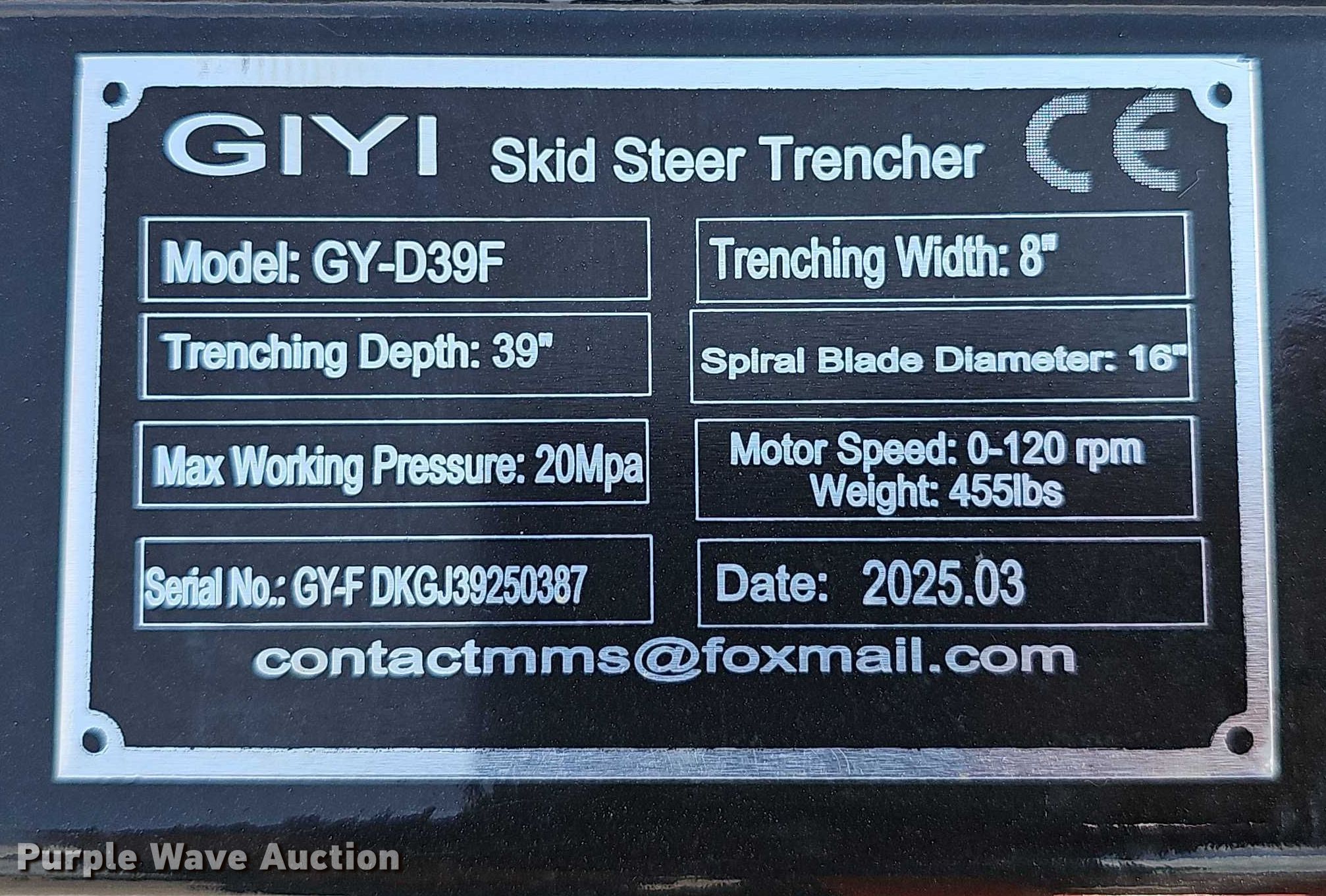 2025 GIYI GY-D39F skid steer trencher | SOLD! July 31 Construction Equipment Auction