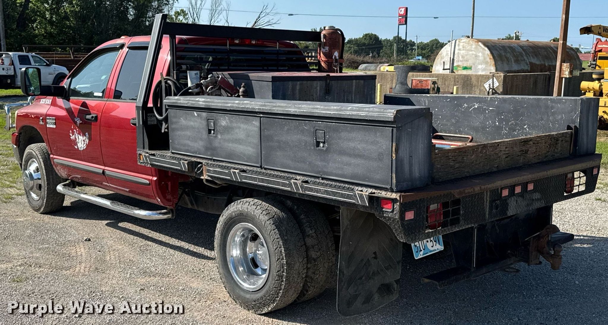 2007 Dodge Ram 3500 Quad Cab flatbed pickup truck has sold in Claremore, Oklahoma for $9130. Item DU9191 sold on July 31st, 2025.