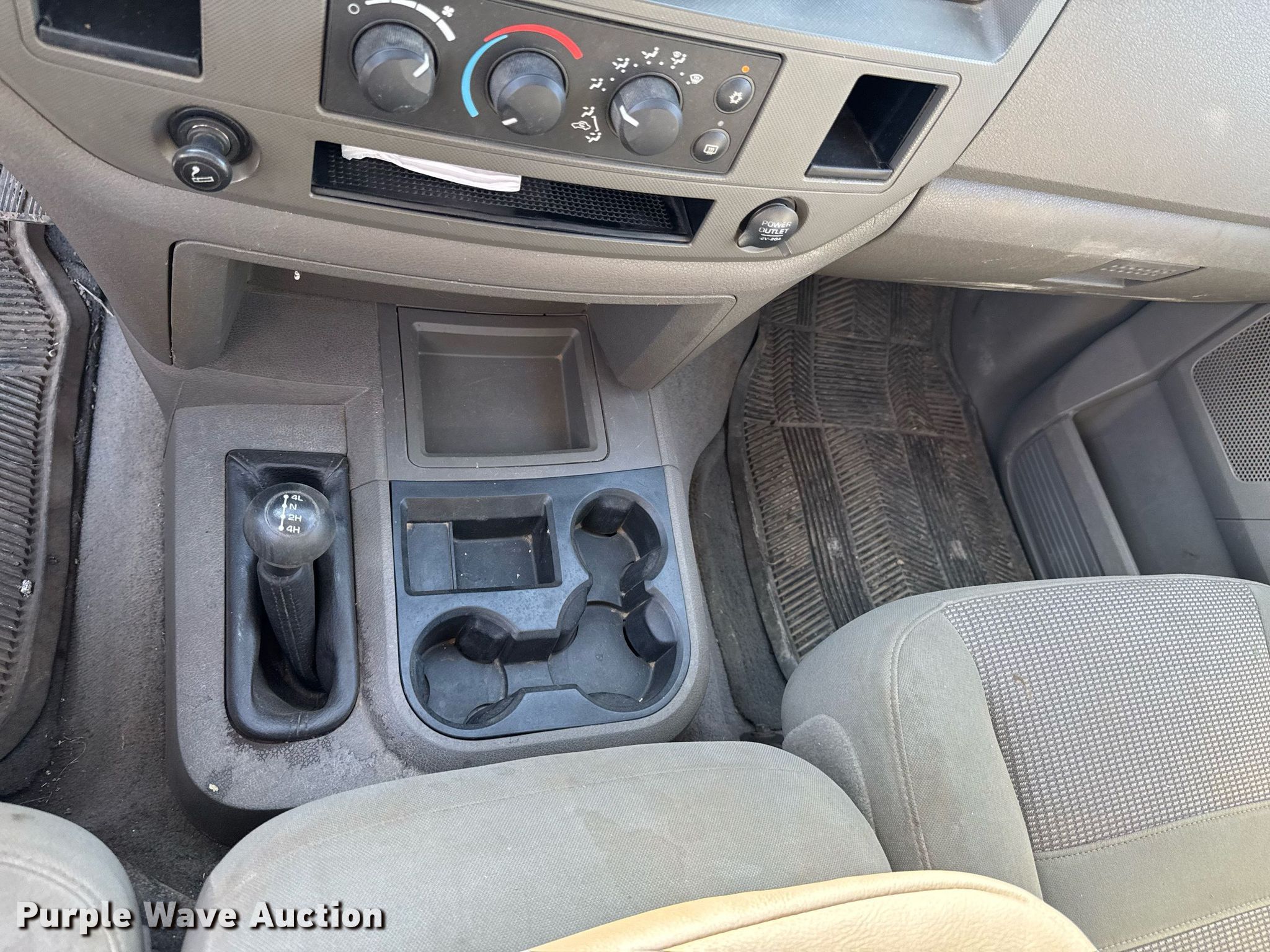 2007 Dodge Ram 3500 Quad Cab flatbed pickup truck. Miles: 283,528 on odometer, VIN: 3D7MX48C87G703764. Engine Displacement: 5.9L L6 OHV, Cylinders: 6, Fuel type: Diesel. Transmission Automatic, Four wheel drive. Interior AC, Heat, Seat: Power driver, Heated mirrors, Power windows, Power locks, Cruise control. Features Flatbed 9' L x 94" W, Hitch: Gooseneck. Tires Size: LT235/80R17. Oklahoma title. Title distribution may be delayed up to 14 days from verification of funds. M&S Construction, Inc. - Retirement Auction - Open Inspection Friday July 18 from 8:00 A.M. to 4:00 P.M.. 24877 Amah Parkway. Claremore, OK 74019
