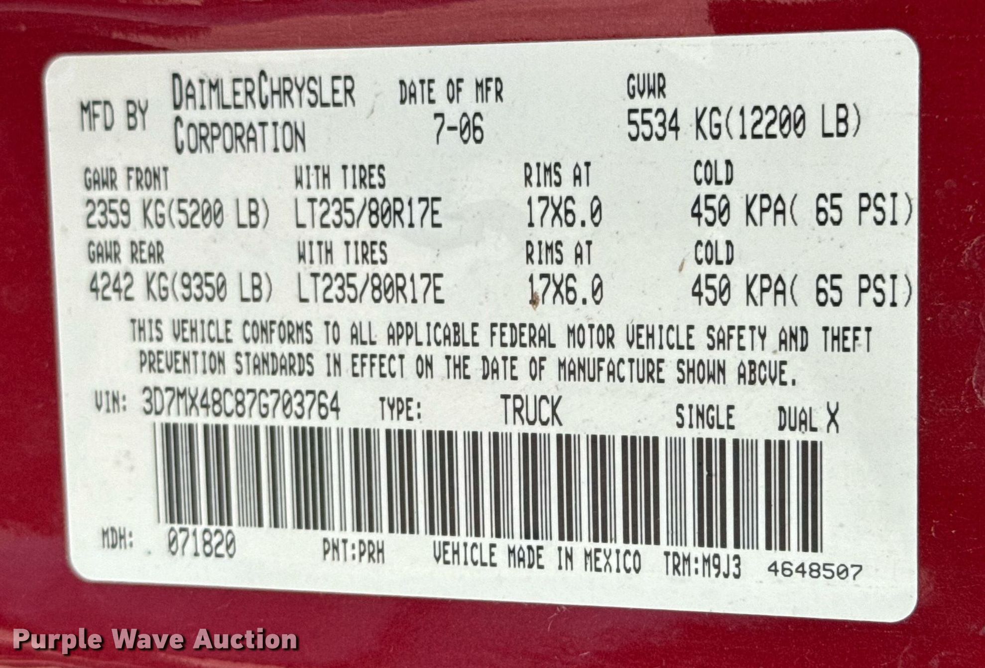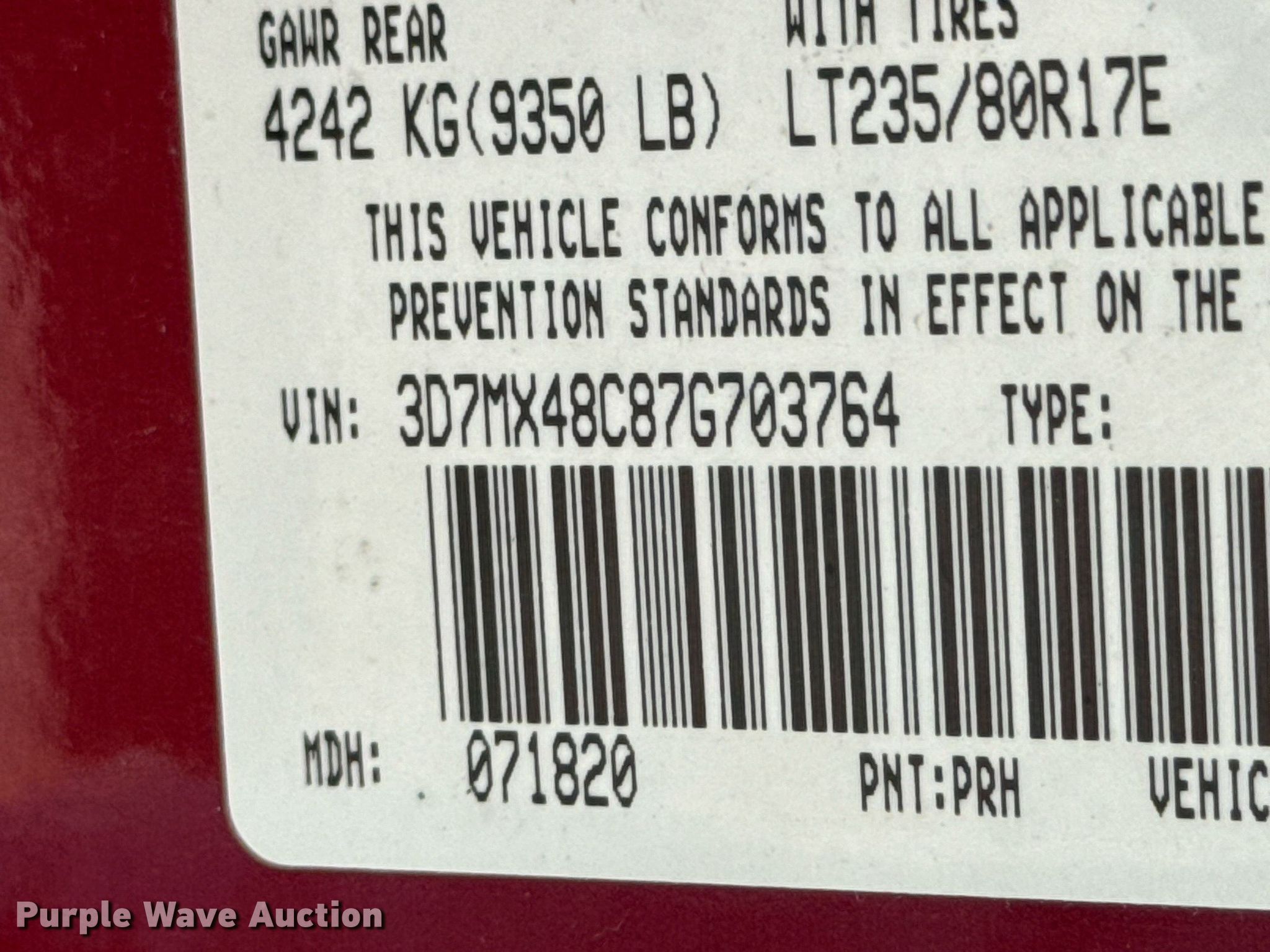 Purple Wave is selling a used 3/4 or 1 Ton Pickup or Van in Oklahoma. This item is a 2007 Dodge Ram 3500 Quad Cab flatbed pickup truck with the following: Miles: 283,528 on odometer, VIN: 3D7MX48C87G703764