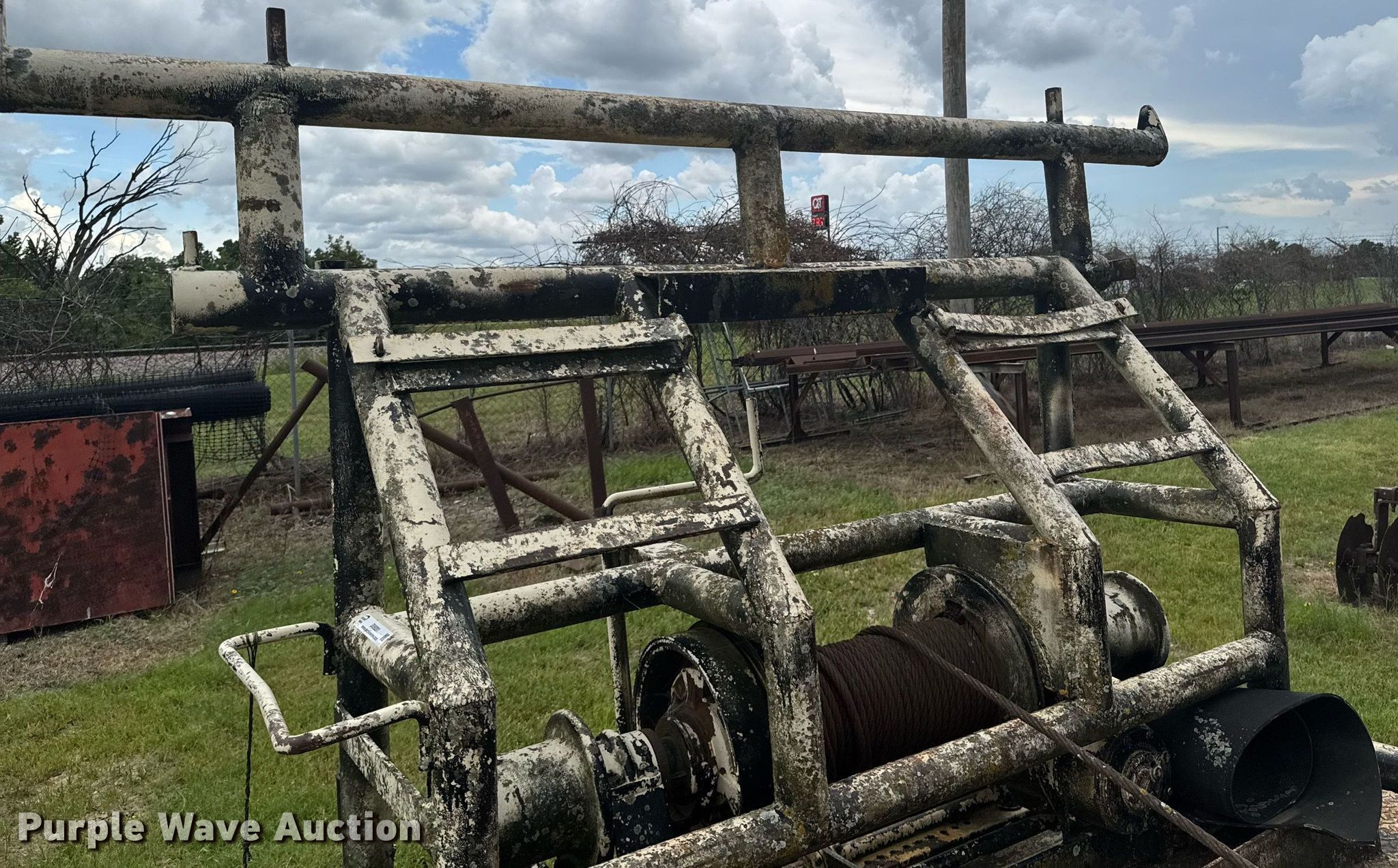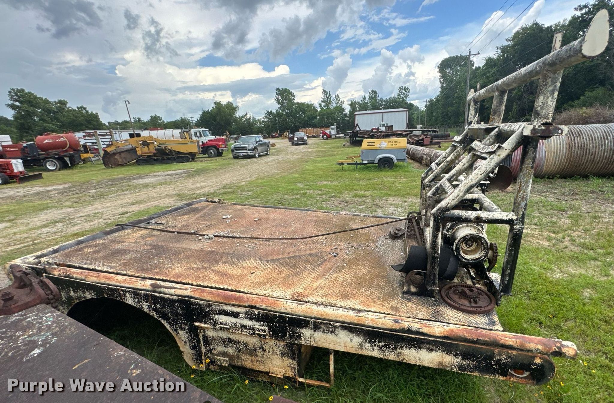 Winch truck bed. Dimensions: 12' L x 96" W. Features Winch Tulsa Winch Company, Gin poles Length: 12', Rolling tailboard. Notes Unknown operating condition. M&S Construction, Inc. - Retirement Auction - Open Inspection Friday July 18 from 8:00 A.M. to 4:00 P.M.. 24877 Amah Parkway. Claremore, OK 74019