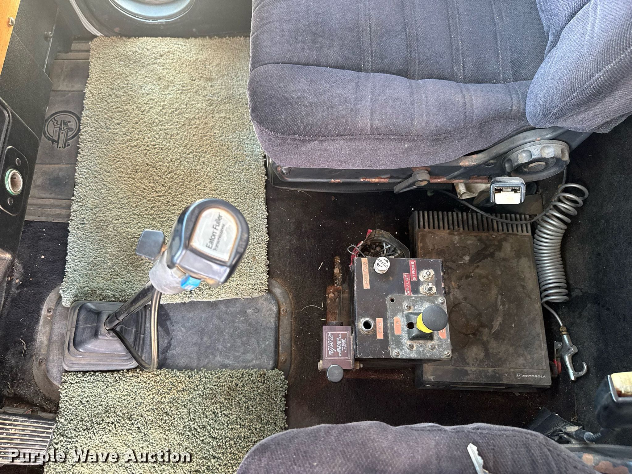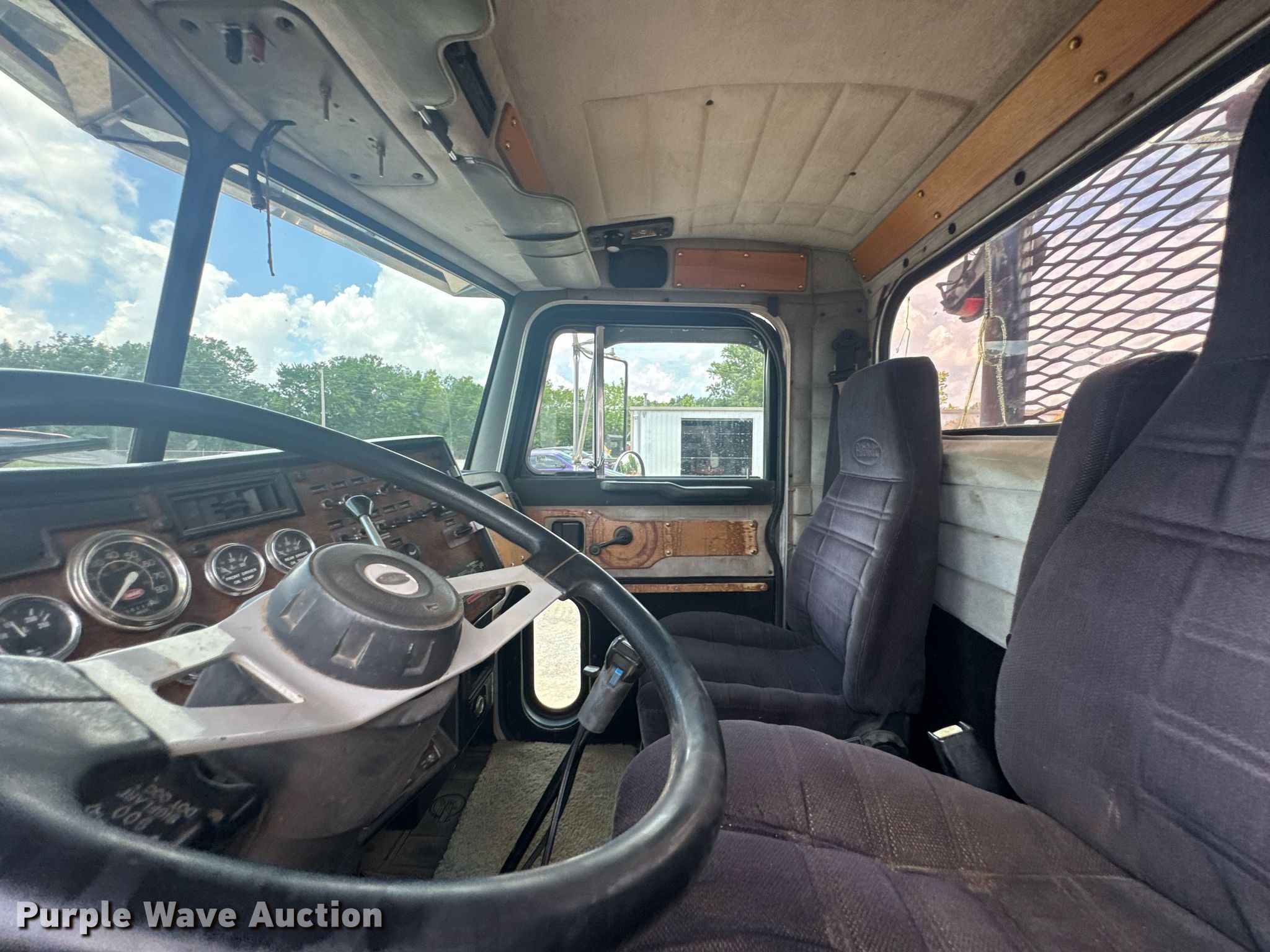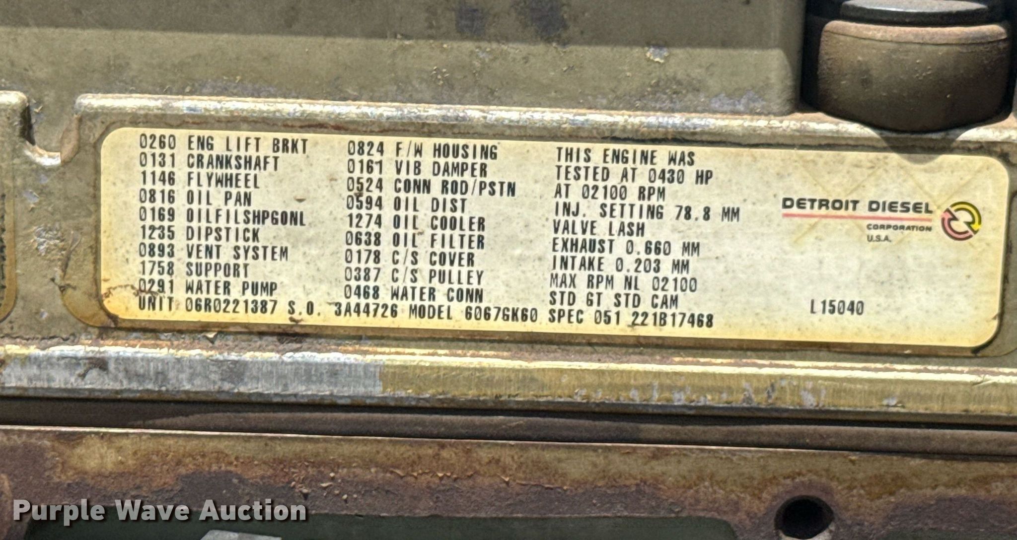 1995 Peterbilt 379 semi truck. Miles: 435,112 on odometer, VIN: 1XP5DR8X1SD379892. Engine Detroit Diesel Series 60, Displacement: 12.7L, Cylinders: 6, Fuel type: Diesel, Engine brake. Transmission Eaton Fuller, Manual, Speed: 15. Chassis Axles: Tandem, Differential lock: Inter-axle, Suspension: Air Dump valves, Brakes: Air, PTO, GVWR: 46,000 lbs FAWR: 12,000 lbs, IAWR: 17,000 lbs, RAWR: 17,000 lbs. Interior AC, Heat, Heated mirrors, Cruise control. Features Deck plate: Steel, Fifth wheel type: Air operated, Sliding, Fuel tank: Dual, Tulsa Winch. Tires Size: 11R24.5. Oklahoma title. Title distribution may be delayed up to 14 days from verification of funds. M&S Construction, Inc. - Retirement Auction - Open Inspection Friday July 18 from 8:00 A.M. to 4:00 P.M.. 24877 Amah Parkway. Claremore, OK 74019