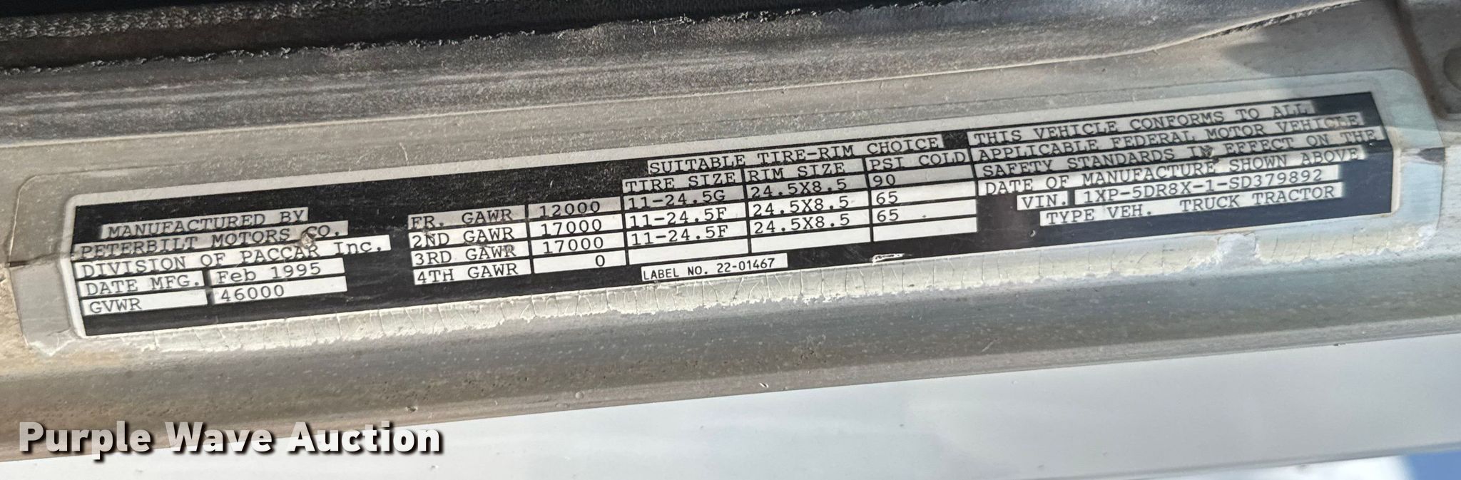 Purple Wave is selling a used Truck Tractor in Oklahoma. This item is a 1995 Peterbilt 379 semi truck with the following: Miles: 435,112 on odometer, VIN: 1XP5DR8X1SD379892