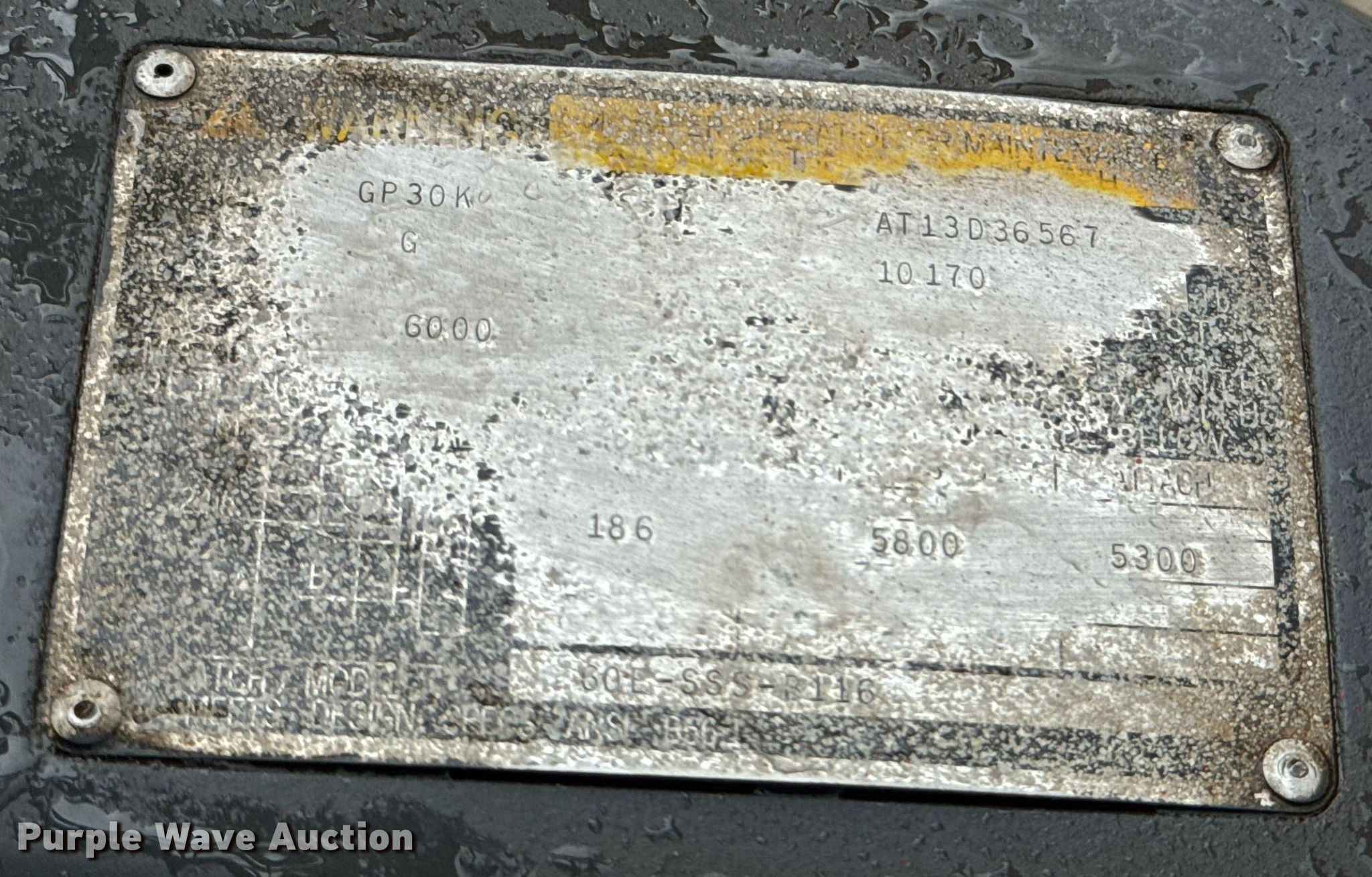 Purple Wave is selling a used Cushion Tire or Pneumatic Forklift in Oklahoma. This item is a 2001 Caterpillar GP30K forklift with the following: Hours: 5,326 on meter, Serial: AT13D36567