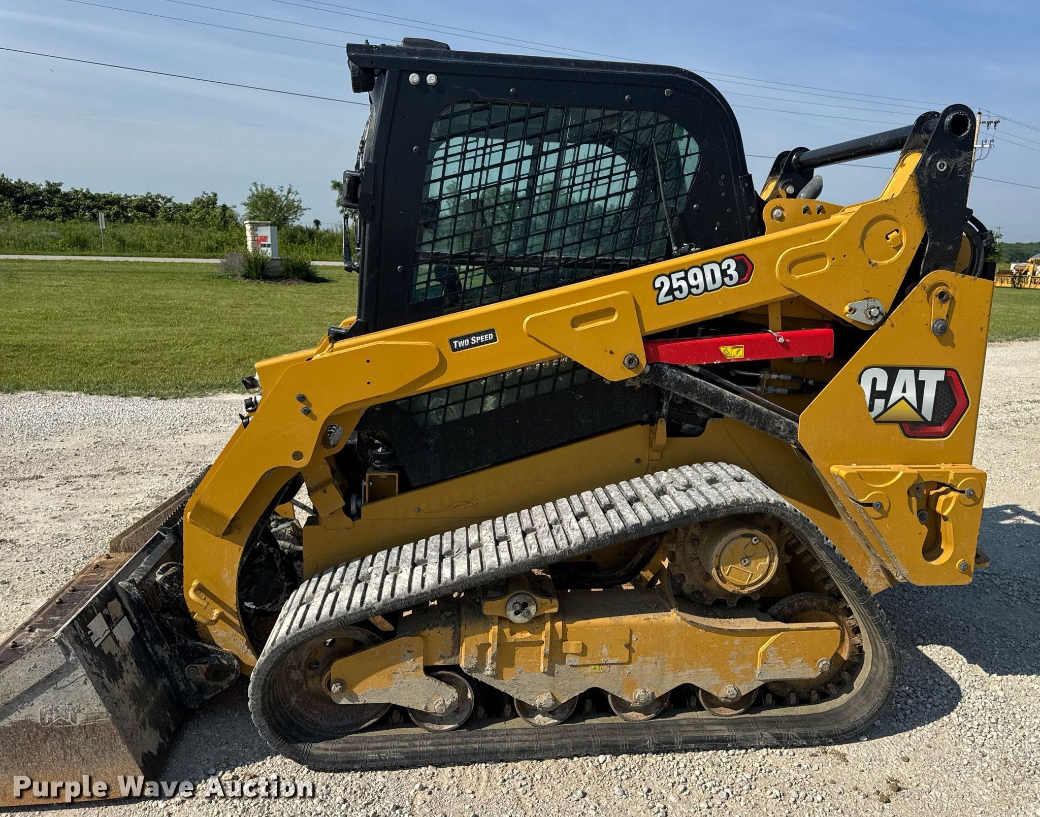This 2024 Caterpillar 259D3 tracked skid steer loader will sell to the highest bidder regardless of price.