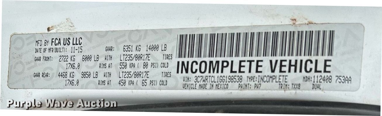 - VIN: 3C7WRTCL1GG198538