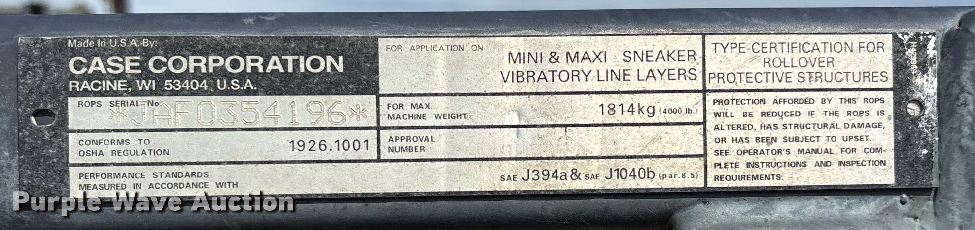 Purple Wave is selling a used Trencher or Rock Saw in Missouri. This item is a 2001 Case Maxi Sneaker Series C trencher with the following: Hours: 170 on meter, Serial: JAF0353852