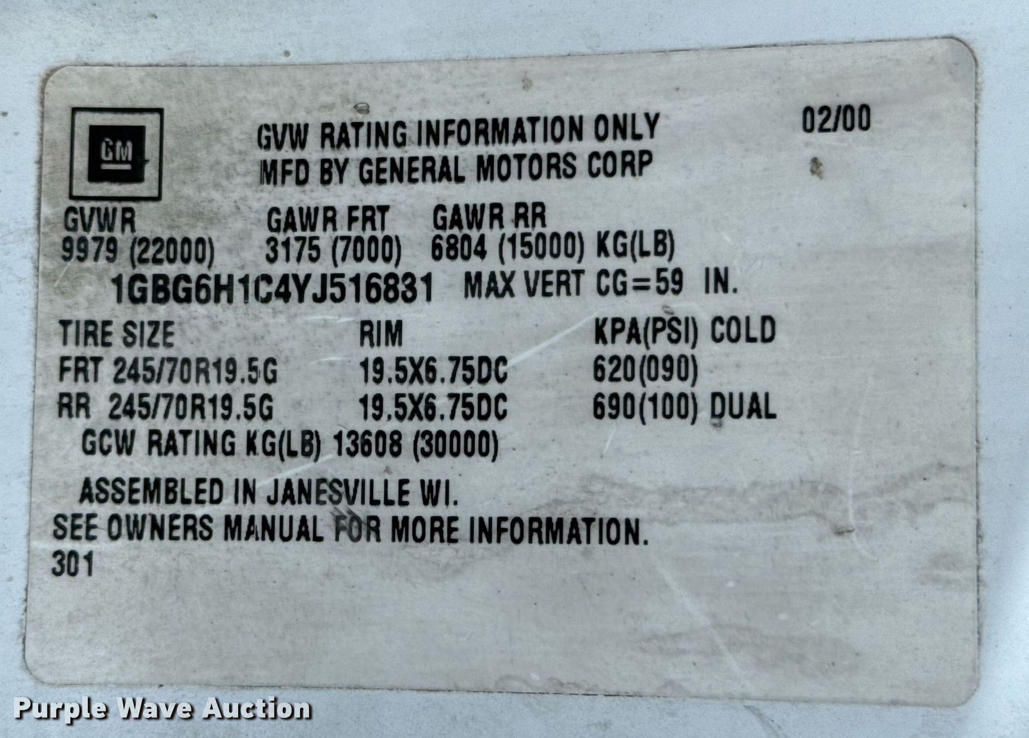 - VIN: 1GBG6H1C4YJ516831
