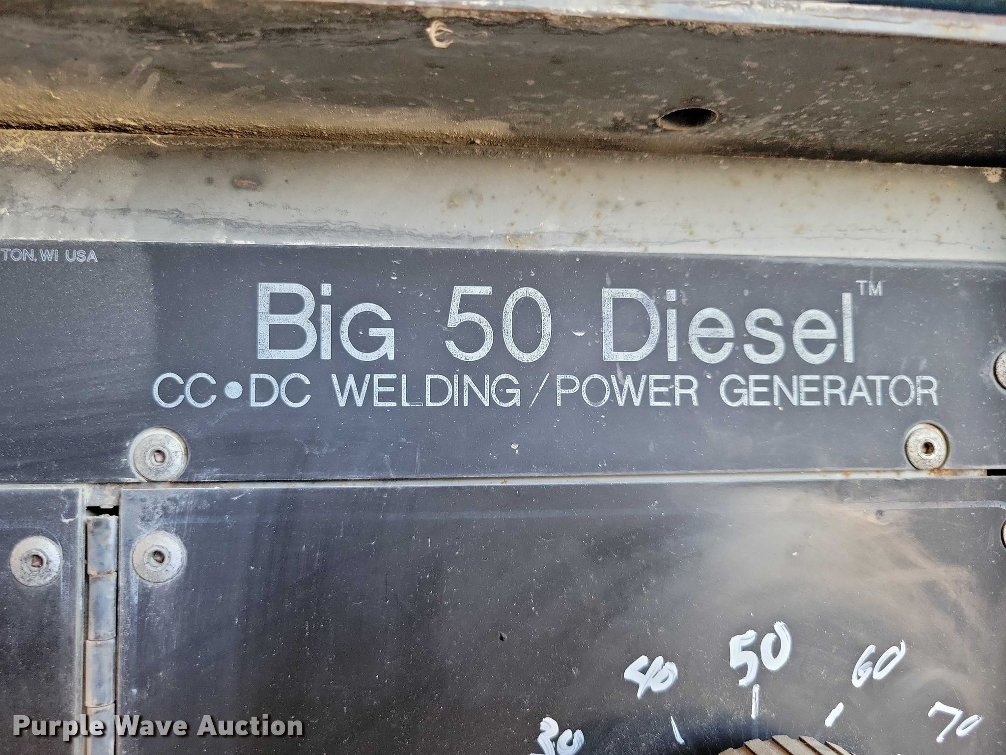 Purple Wave is selling a used Welder (Manual) in Iowa. This item is a Miller Big 50 welder/generator with the following: Continental TMD27, Serial: 94100913, Cylinders: 4, Fuel type: Diesel