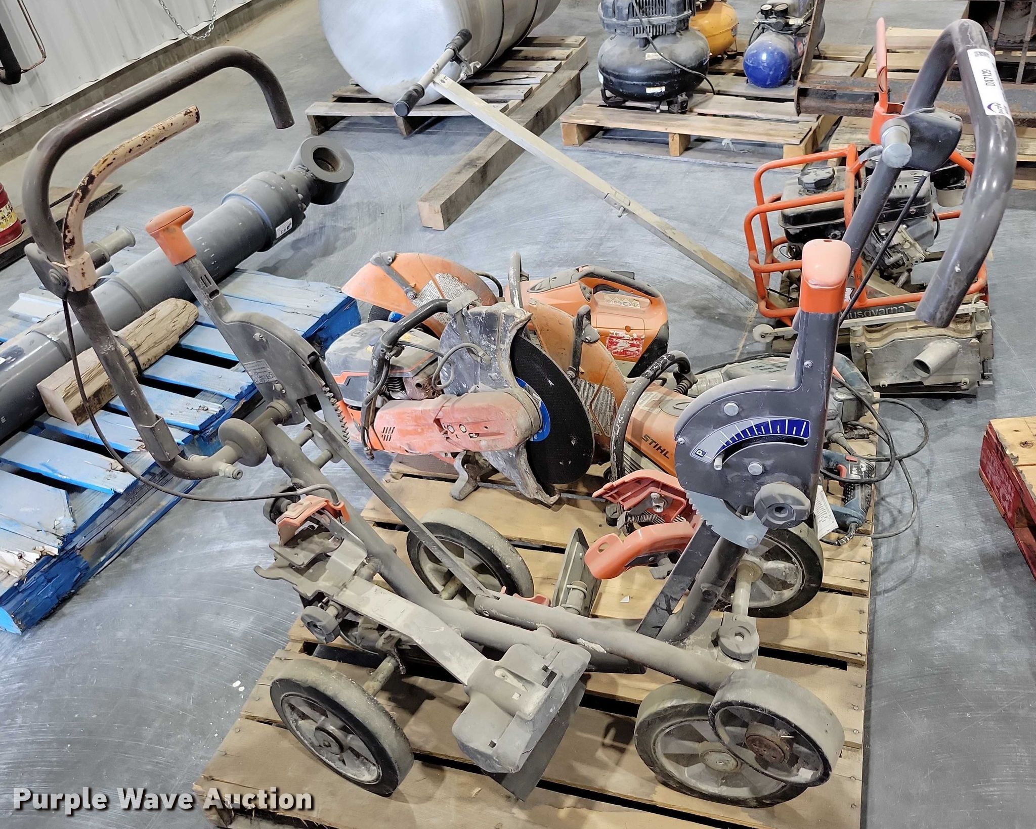 Purple Wave is selling a used Tools in Iowa. This item is a Tools with the following: (2) saw carts, (2) Stihl concrete saws, (2) Husqvarna concrete saw, Bosch hammer drill, Bosch sawzall, Unknown operating condition of units