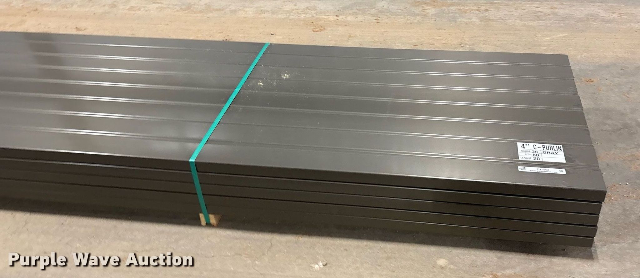 Purple Wave is selling a used Building Materials in Texas. This item is a (80) Doerksen Metal Components C-Purlins with the following: 20' L x 4" W, 20 gauge, Color: Gray, Possible blemishes