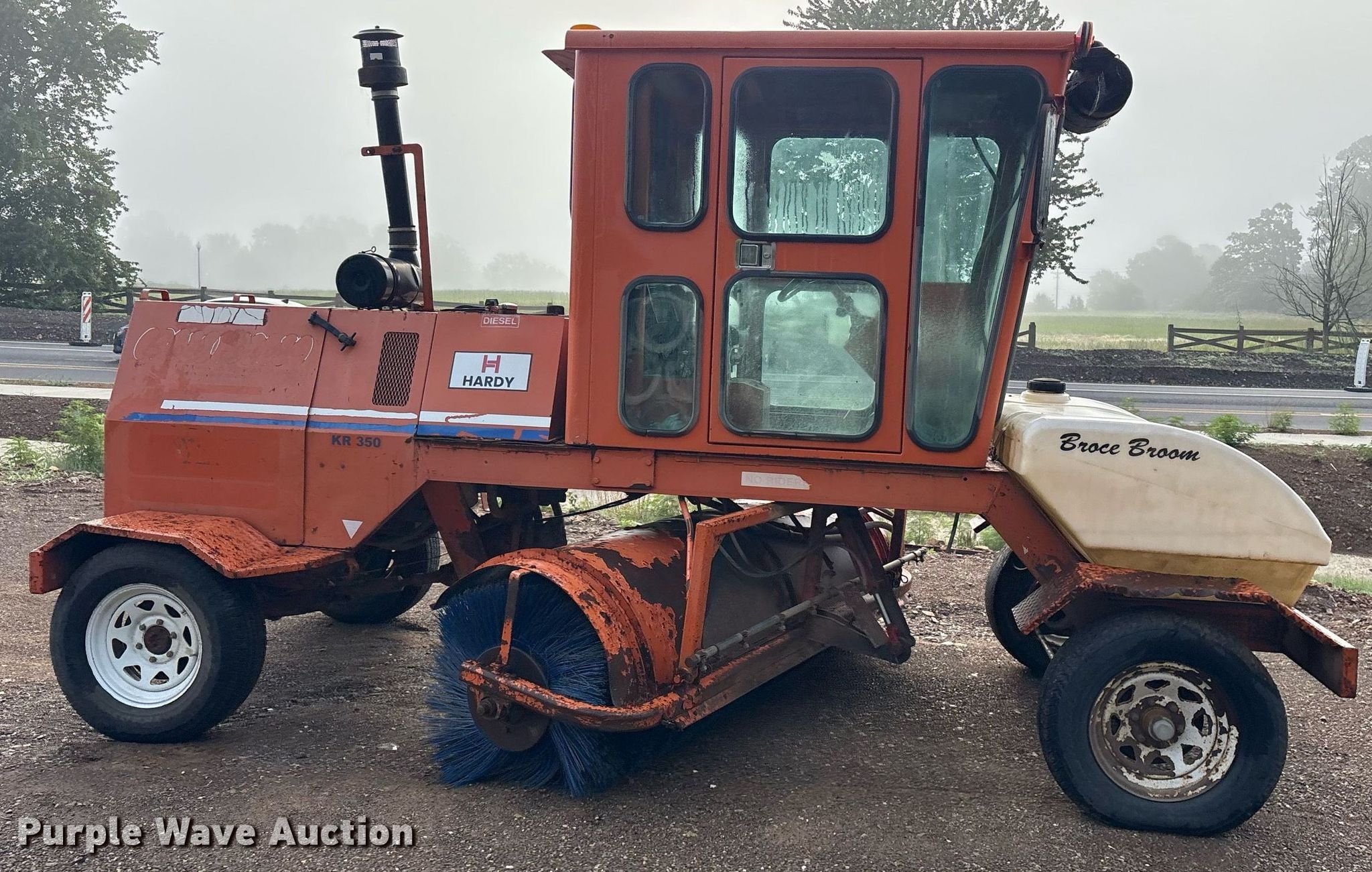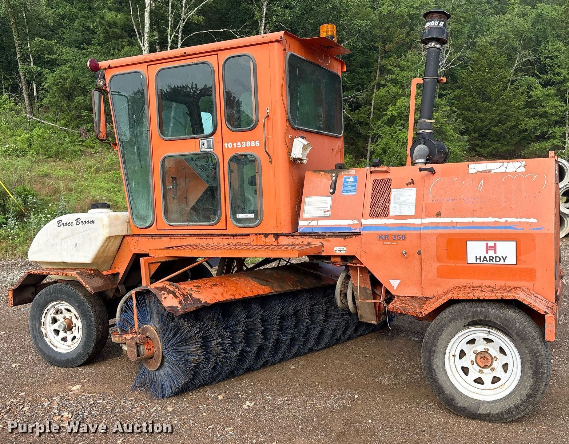 2013 Broce KR350 broom. Hours: 616 on meter, Serial: 408215, Unit #: 6309. Engine Kubota, Cylinders: 4, Fuel type: Diesel. Transmission Hydrostatic. Chassis Brakes: Hydraulic. Operators station Enclosed cab, AC, Heat. Features Broom Width: 102", Water spray system. Tires Size: LT225/75R16. Notes Windshield chipped or cracked, Dead battery, Unit must be jump started, Non-operational brakes. Transfer of ownership documentation will be a bill of sale. Hardy Holding Group. Hot Springs, AR 71913