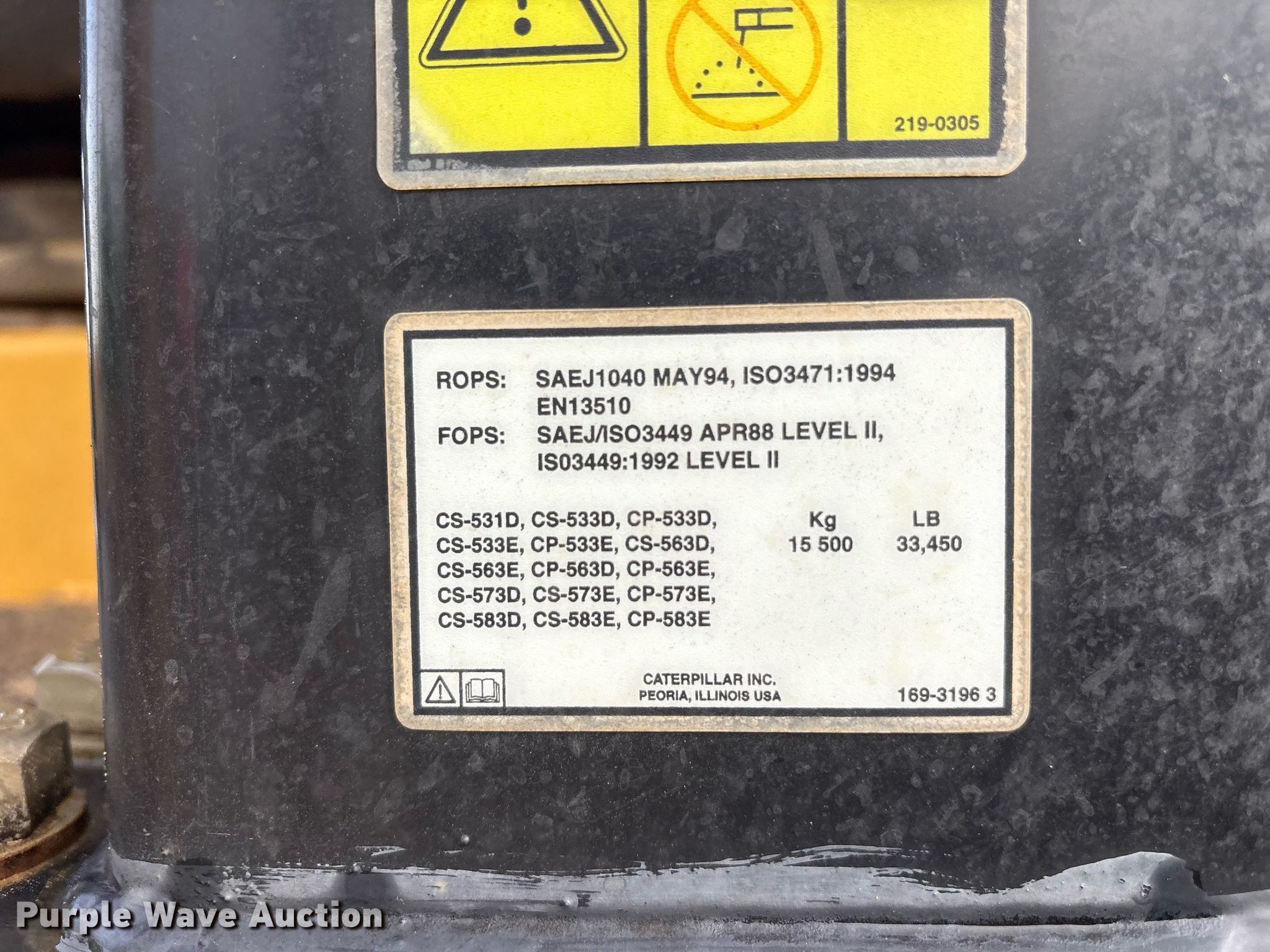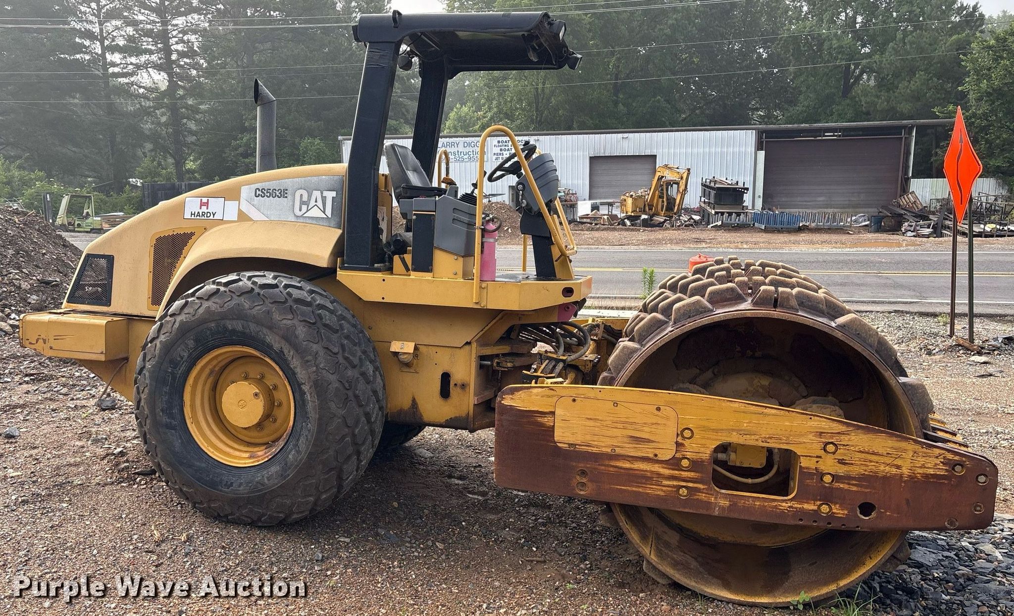 Purple Wave is selling a used Single Drum Roller Compactor in Arkansas. This item is a 2007 Caterpillar CS563E single drum vibratory roller with the following: Hours: 6,508 on meter, Serial: CATCS563KCNG02302, Unit #: 646