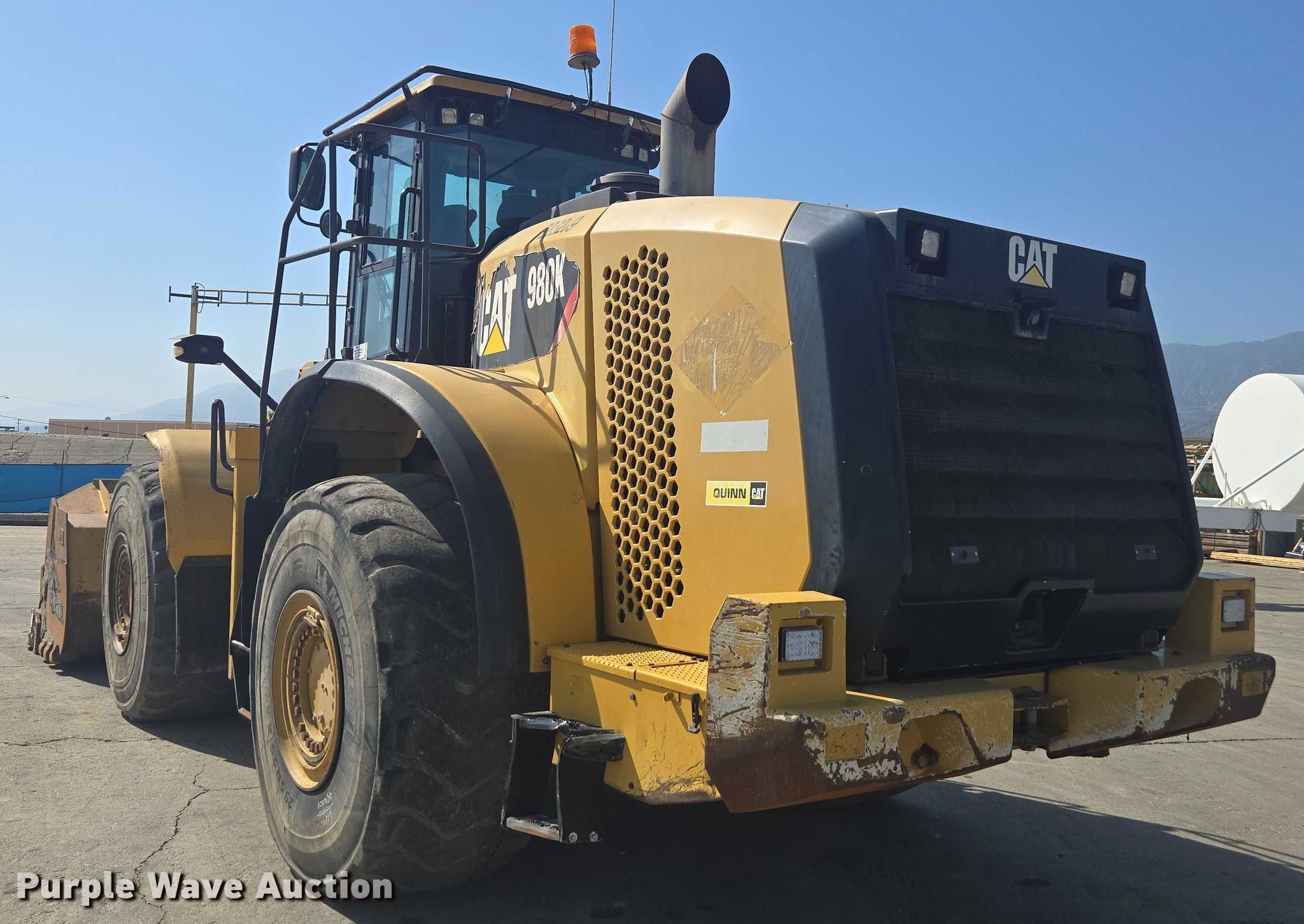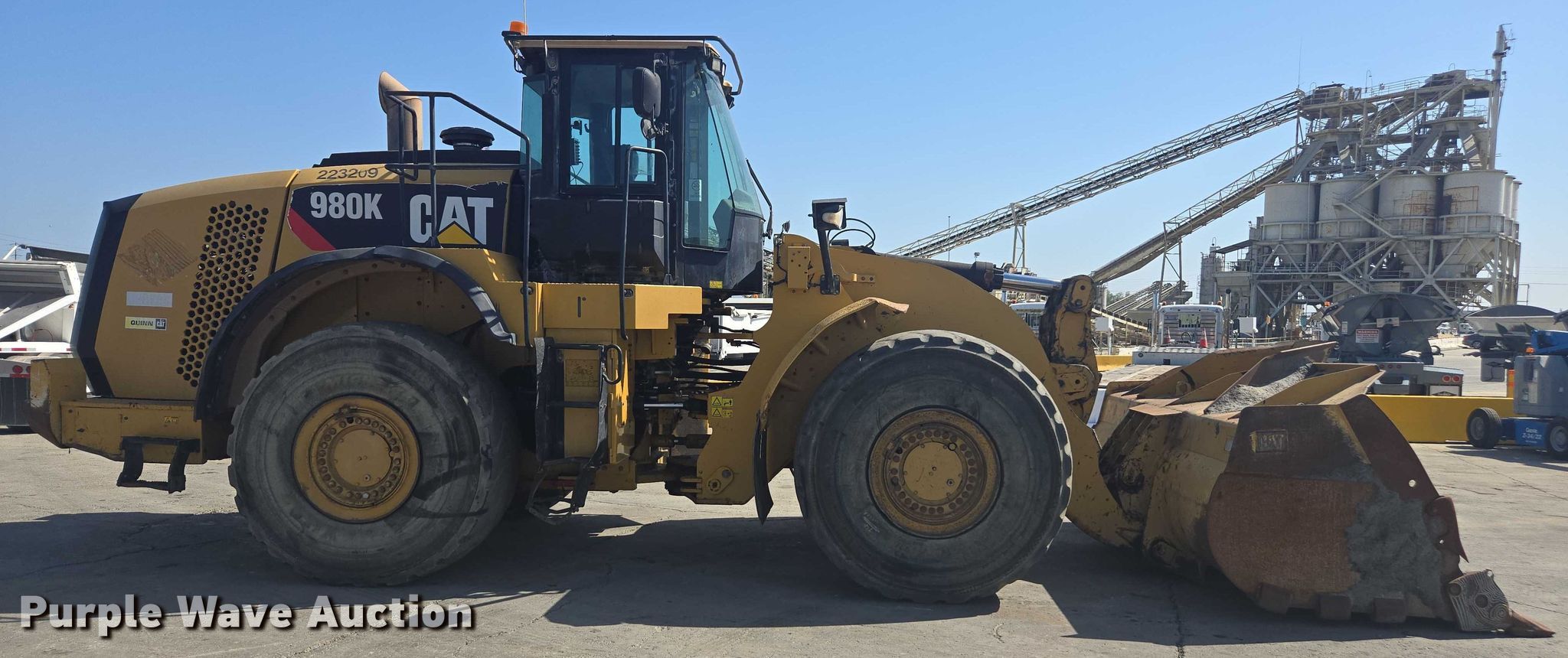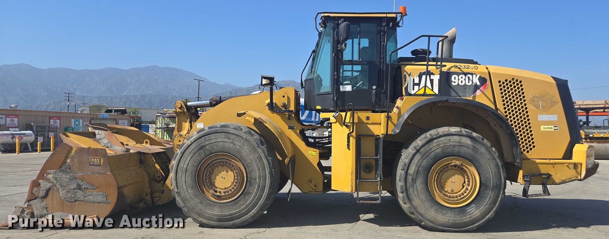 Purple Wave is selling a used Wheel Loader in California. This item is a 2013 Caterpillar 980K wheel loader with the following: Hours: 26,218 on meter, Serial: CAT0980KVW7K01388, Unit #: SUL223209