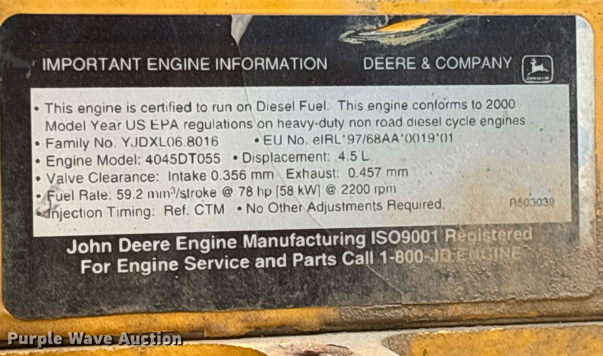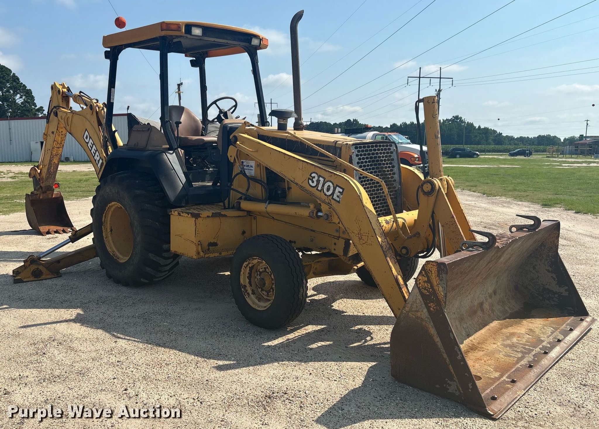 2000 John Deere 310E backhoe. Hours: Unknown, Serial: T0310EX892487. Engine John Deere 4045DT055, Displacement: 4.5L, Fuel type: Diesel. Transmission Shuttle shift. Chassis Differential lock. Operators station OROPS, Backhoe controls: Wobble stick / two stick. Features Loader Bucket Bucket leveler, Width: 86", Cutting edge: Bolt-on, Backhoe Bucket Width: 24", Teeth: 5.. Tires Front: 11L-16SL, Rear: 19.5L-24. Mickey Meekins Farm Equipment. Lumberton, NC 28358