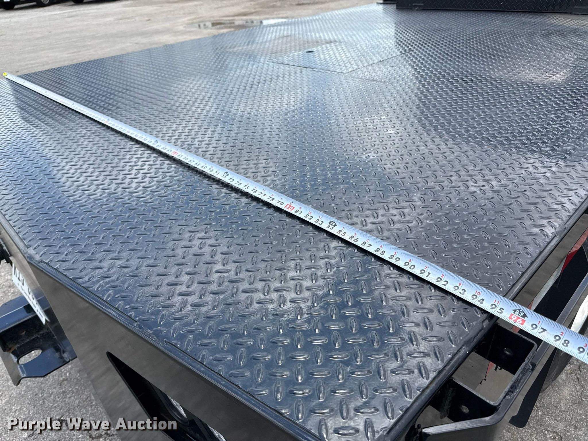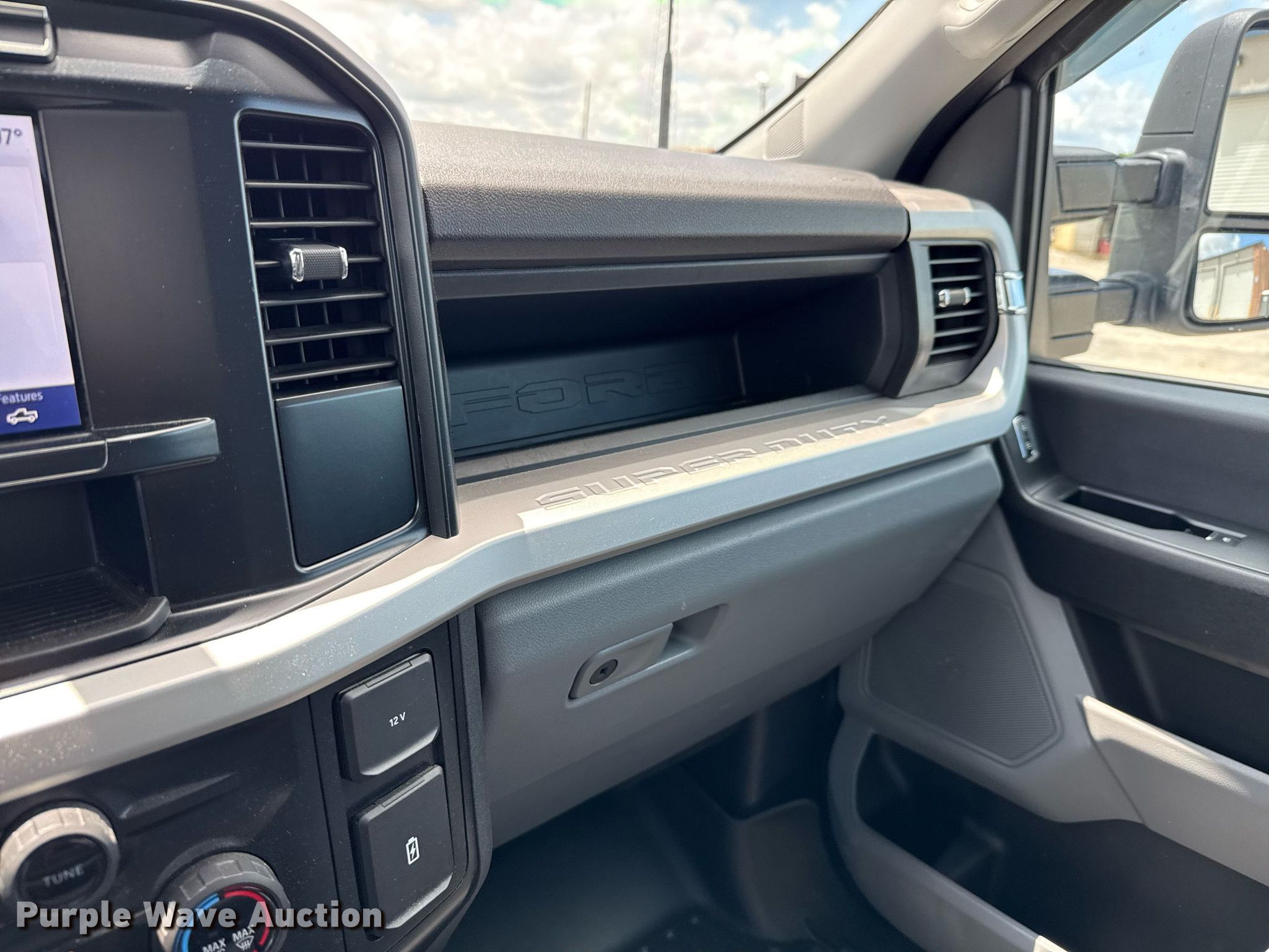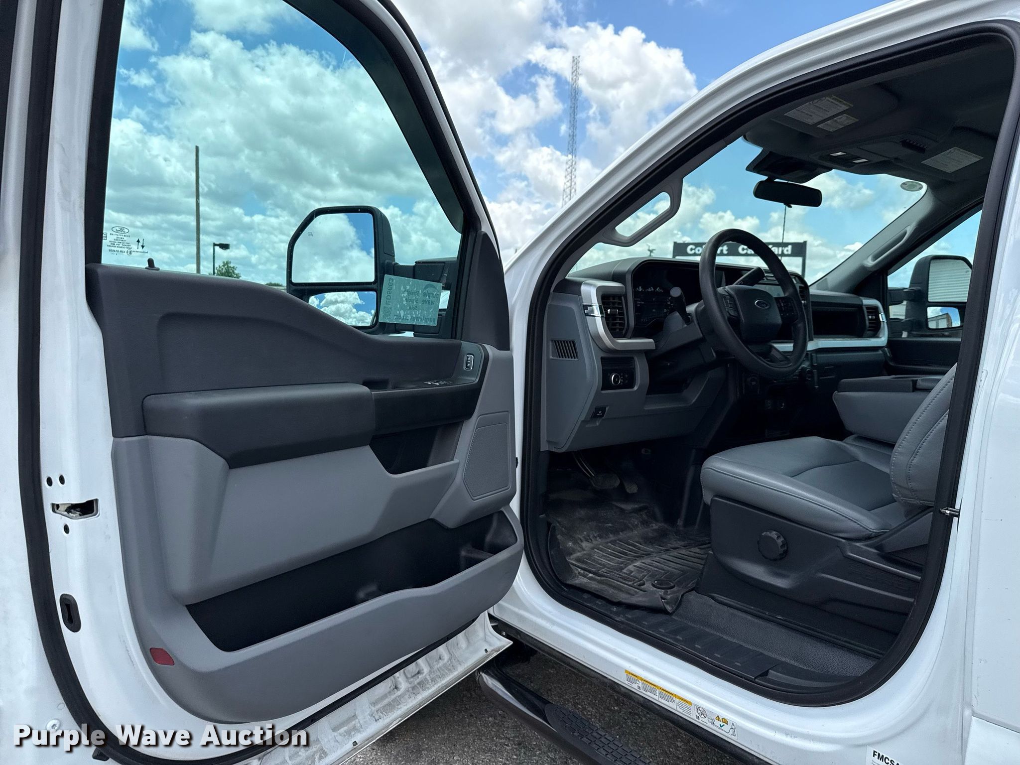 2024 Ford F550 Super Duty XL flatbed truck. Miles: 76,616 on odometer, Engine hours: 1,937 on meter, VIN: 1FDUF5GT8RDA04800, Unit #: 10660. Engine Displacement: 6.7L, Cylinders: 8, Fuel type: Diesel. Transmission Automatic. Chassis Axles: Single, Suspension: Spring, Brakes: Hydraulic, GVWR: 19,500 lbs. Interior AC, Heat, Heated mirrors, Power windows, Power locks, Cruise control, Auxiliary controls, Brake controller. Features Flatbed Crownline RRCW136, Serial: 0629-2.5", 11' 4" L x 98" W, Gooseneck, Auxiliary fuel tank, Fill-Rite pump GPM: 15. Tires Size: 225/70R19.5. Notes Windshield chipped or cracked. Texas title. Title distribution may be delayed up to 30 days from verification of funds. Valfair Construction. Forney, TX 75126