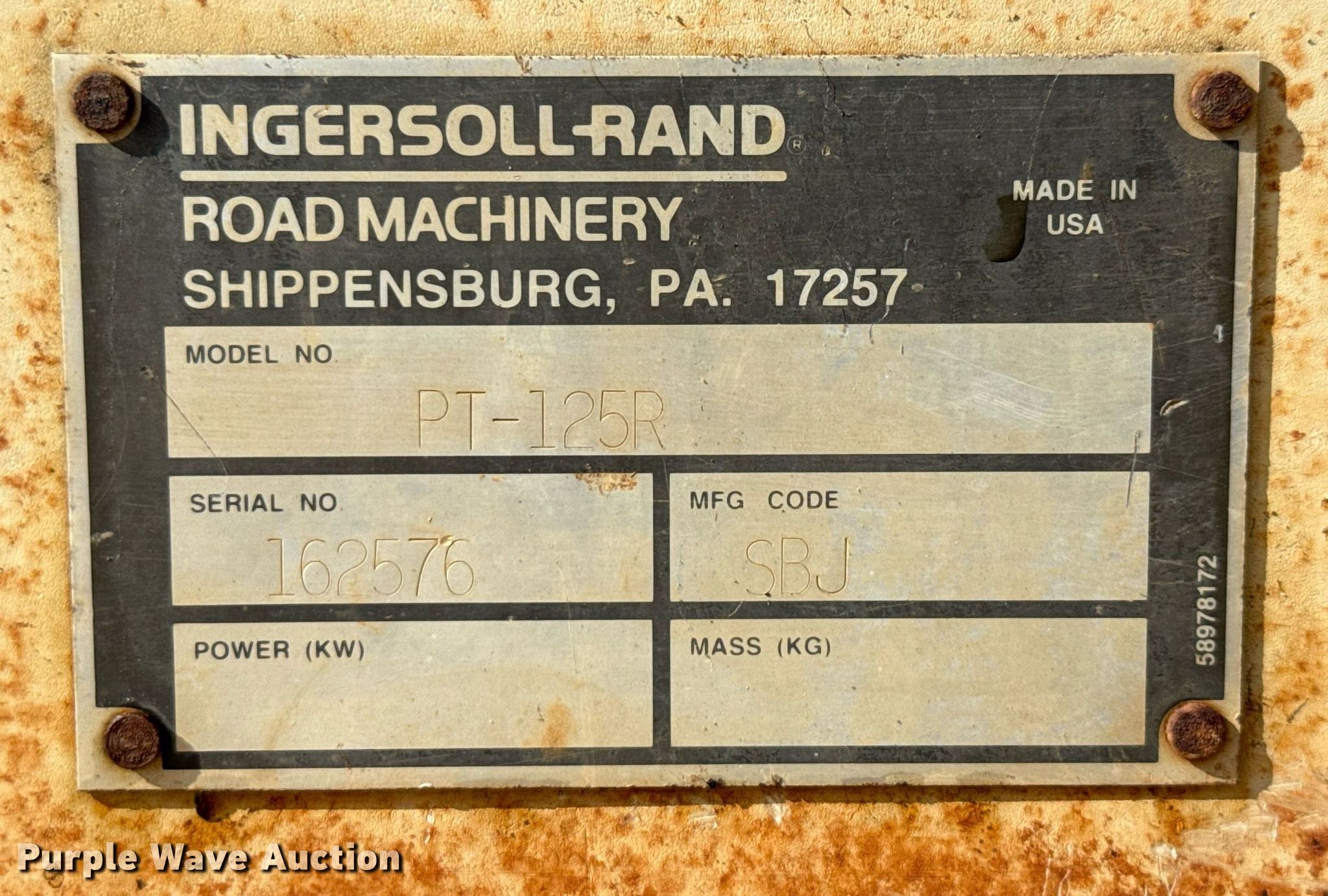 Purple Wave is selling a used Pneumatic Roller in Texas. This item is a 2000 Ingersoll-Rand PT-125R pneumatic roller with the following: Hours: 2,487 on meter, Serial: 162576
