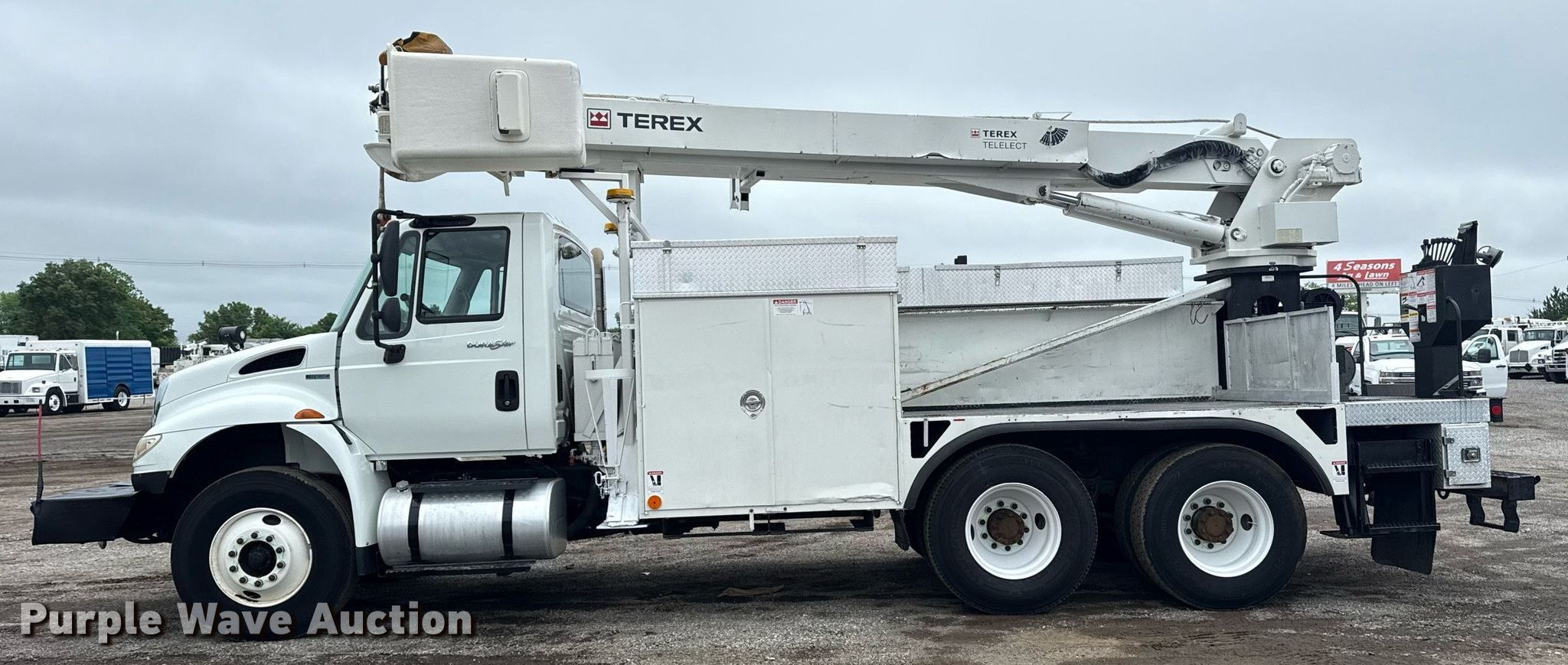 2010 International 4400 bucket truck. Miles: 51,599 on odometer, Hours: 8,728 on meter, VIN: 1HTMSAAR0AH191231. Engine International Maxxforce, Displacement: 7.6L, Cylinders: 6, Fuel type: Diesel. Transmission Allison, Automatic. Chassis Axles: Tandem, Differential lock: Full, Suspension: Spring, Brakes: Air, PTO, GVWR: 54,000 lbs. Interior AC, Heat, Heated mirrors, Cruise control, Auxiliary controls, Brake controller. Features Bed Dakota Bodies Inc, Serial: DB11940, 17' 10" L x 96" W, Boom 2009 Terex Commander C5050, Serial: 2090740193, Maximum lift capacity: 3,000 lbs, Maximum lift height: 50', Boom type: Insulated, Telescopic, Man basket, Boom controls Platform/ basket, Material handler, Winch. Tires Front: 12R22.5, Rear: 11R22.5. Oklahoma title. Seller is an Oklahoma licensed motor vehicle dealer. Title will be assigned and distributed by the dealer. Please contact the seller for distribution questions. Title distribution may be delayed up to 30 days from verification of funds. Collinsville, OK 74021