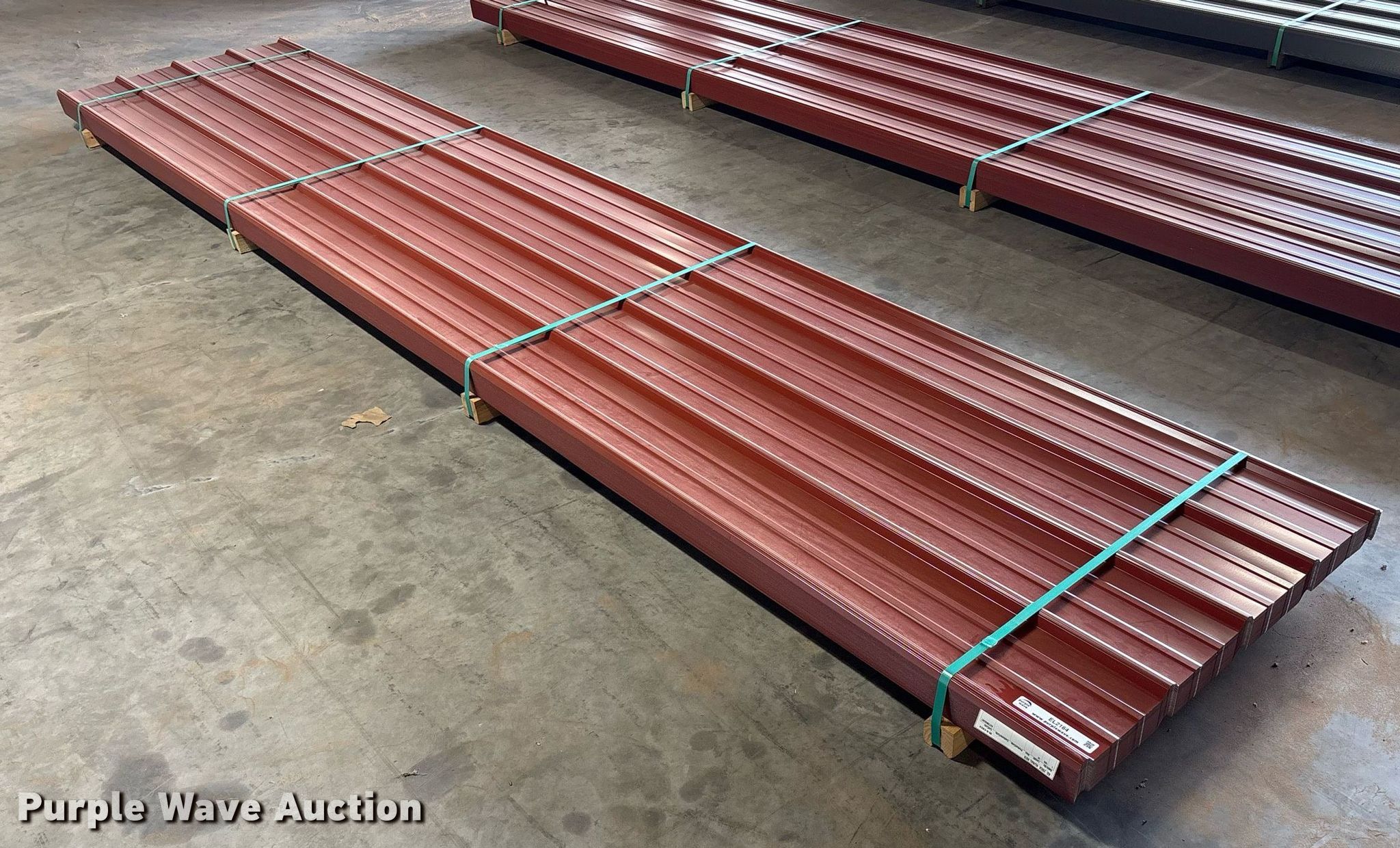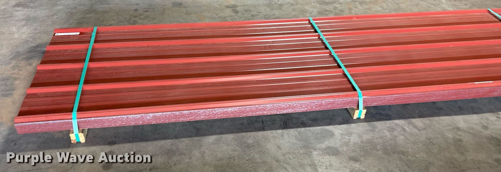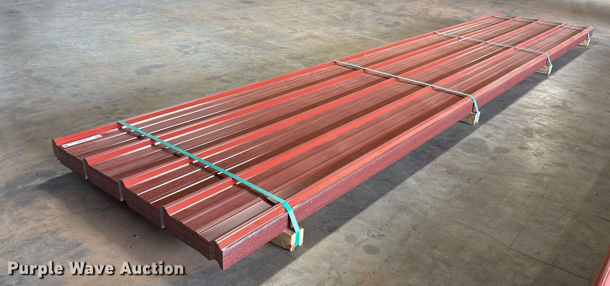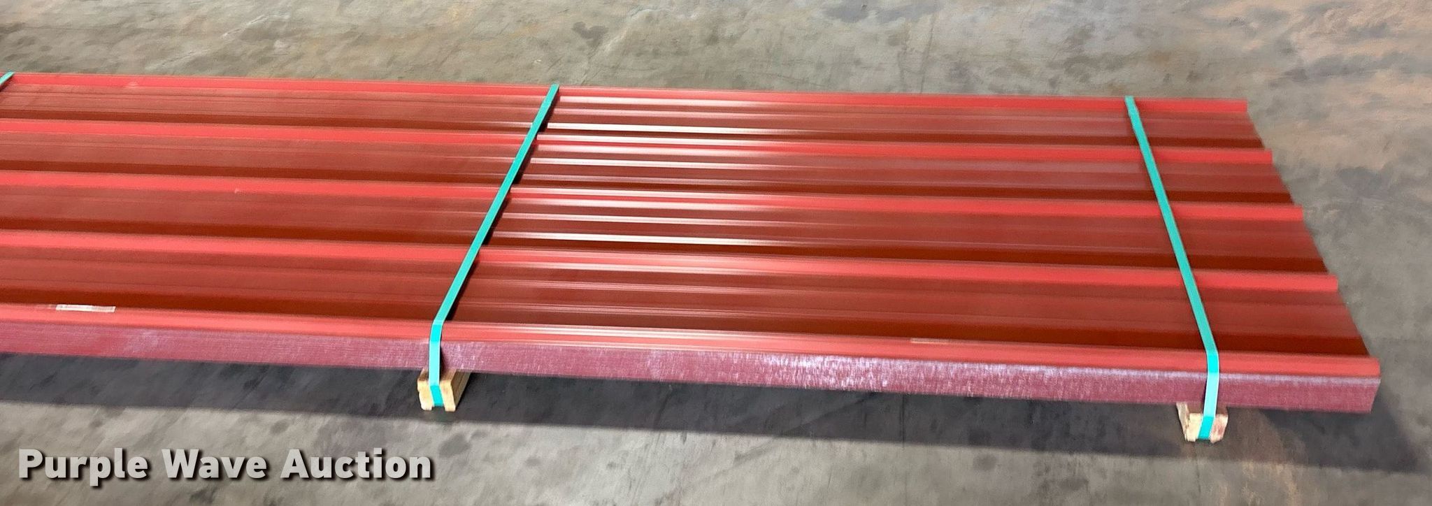 Purple Wave is selling a used Building Materials in Texas. This item is a (108) sheets of Doerksen Metal Components metal siding/roofing with the following: 16� L x 38� W overlap coverage, AG panel, 29 gauge, Color: Rural red, Possible blemishes