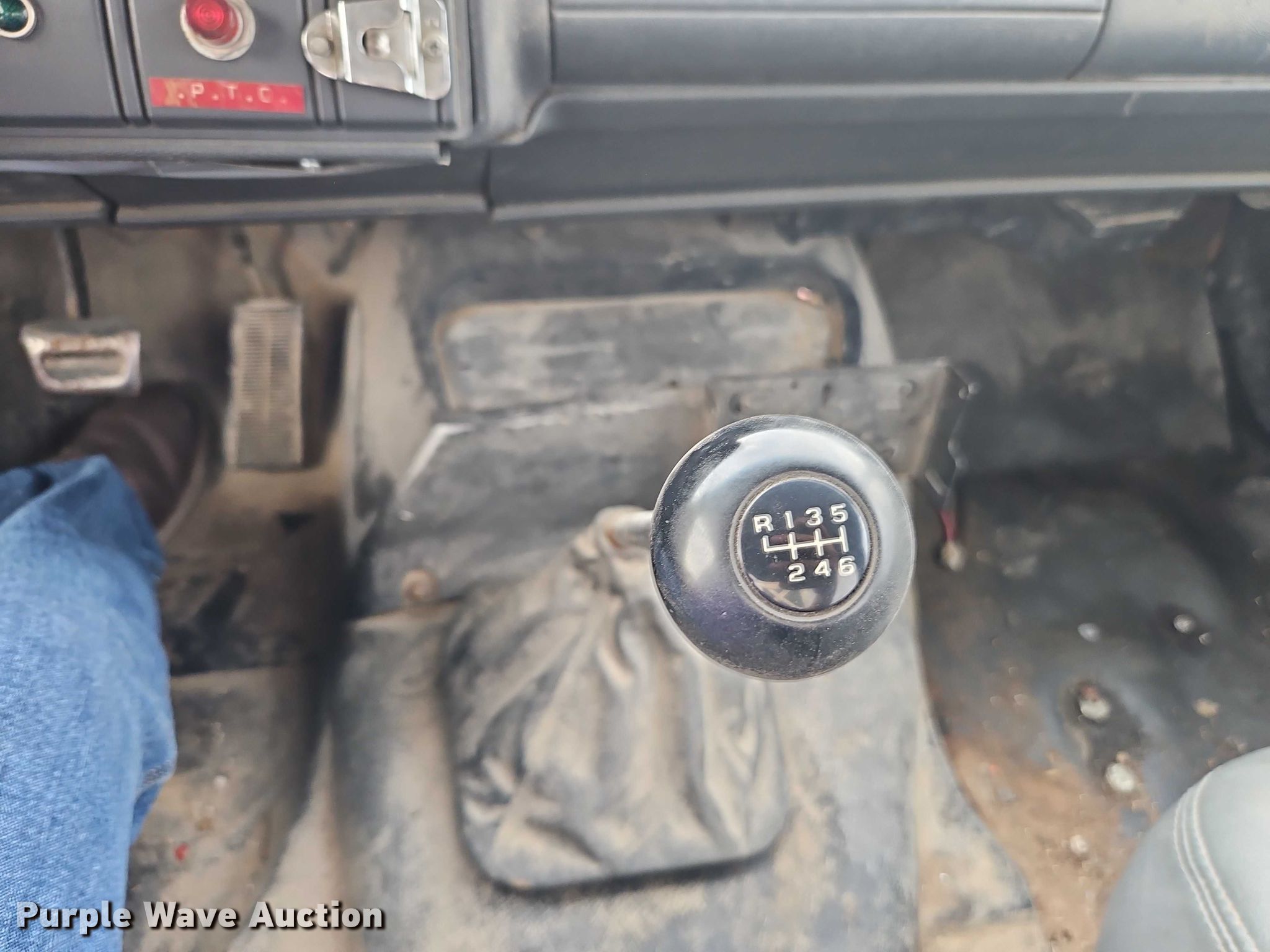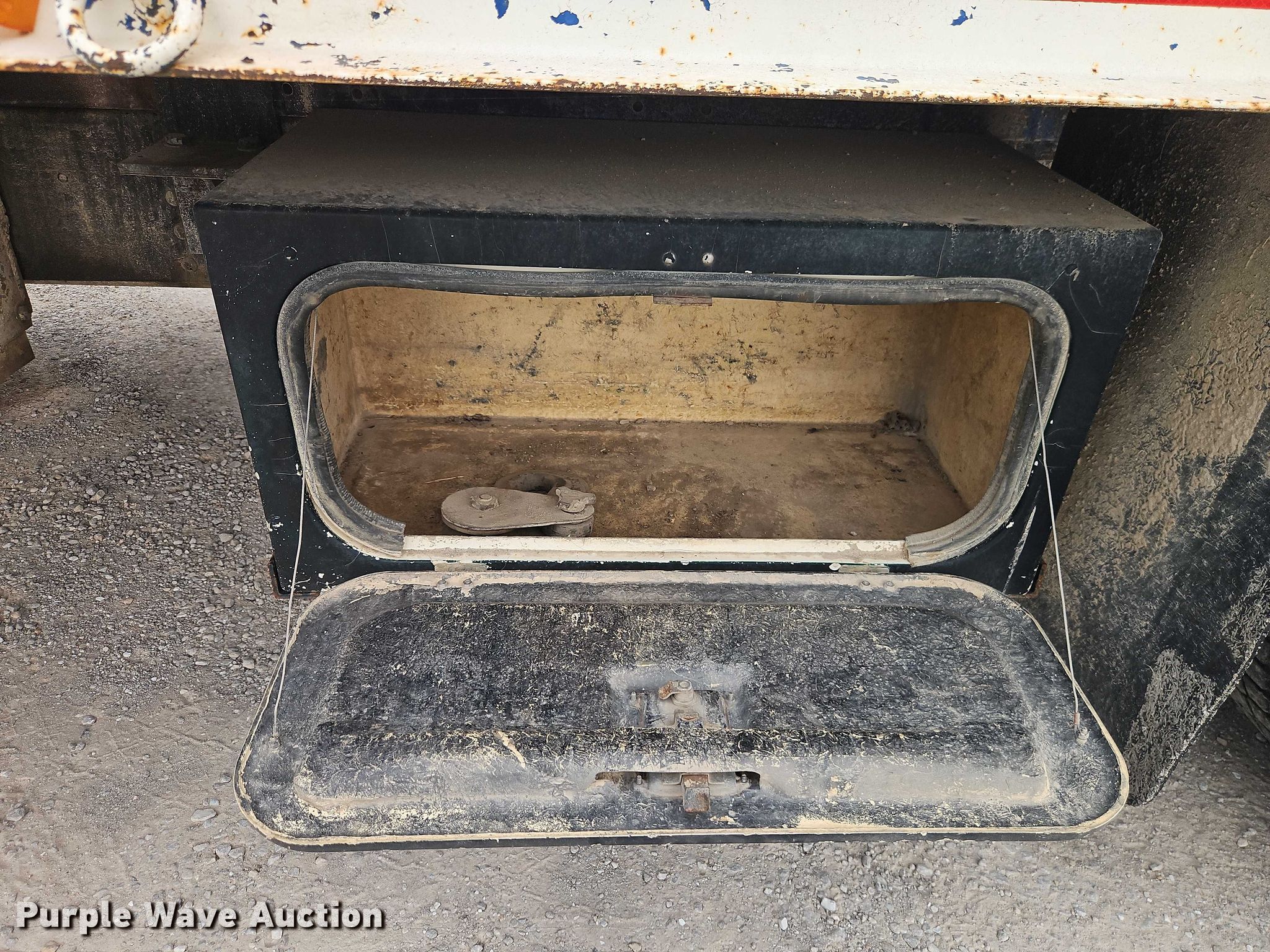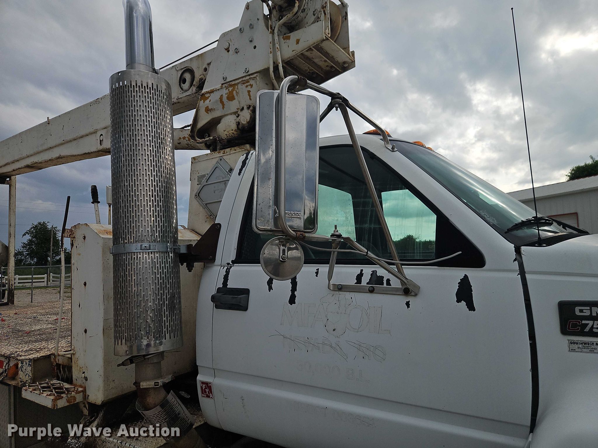 2000 GMC C7500 crane truck. Miles: 137,300 on odometer, VIN: 1GDL7H1C6YJ504215. Engine Caterpillar 3126, Displacement: 7.2L, Cylinders: 6, Fuel type: Diesel. Transmission Manual, Speed: 6. Chassis Axles: Single, Suspension: Spring, Brakes: Hydraulic, PTO, GVWR: 32,000 lbs FAWR: 11,000 lbs, RAWR: 21,000 lbs. Interior AC, Heat, Cruise control. Features Flatbed 12' L x 94" W, Crane Tulsa, Boom Telescopic, Sections: 3, Boom controls Ground, Crane ball & hook. Tires Size: 11R22.5. Notes Non-operational AC, Dash warning indicator: ABS. Missouri title. Title distribution may be delayed up to 30 days from verification of funds. MFA Oil Company. Nevada, MO 64772