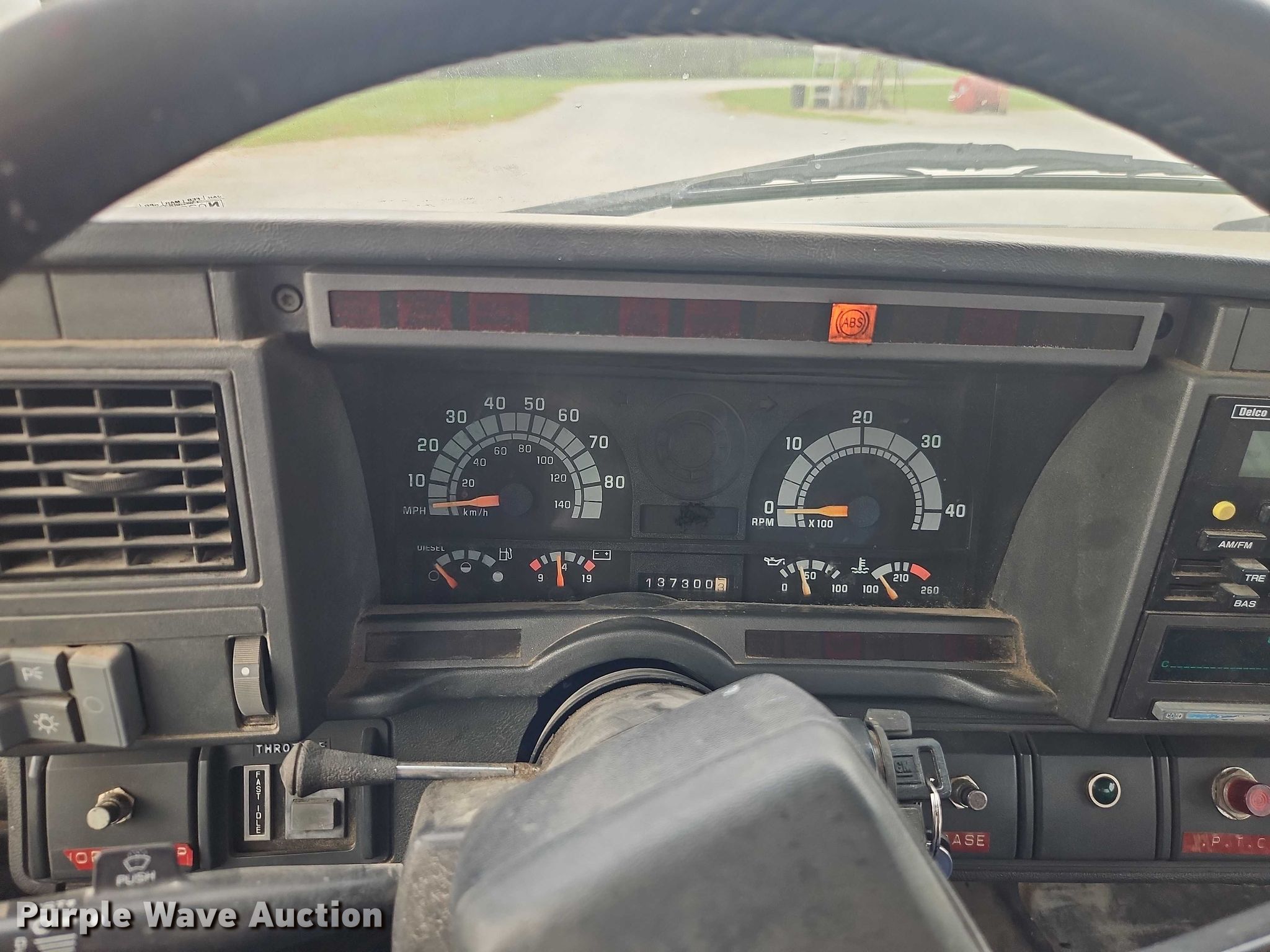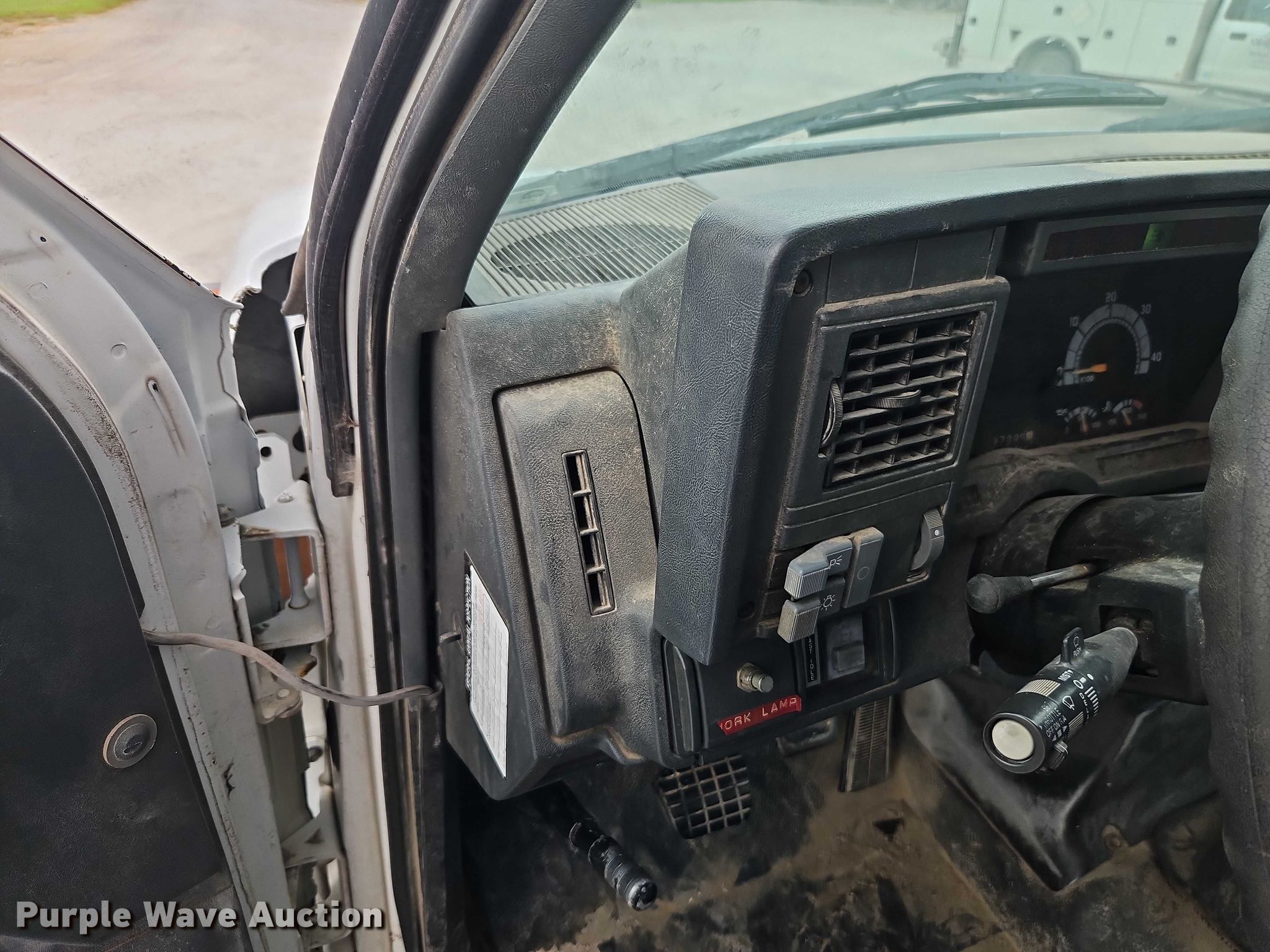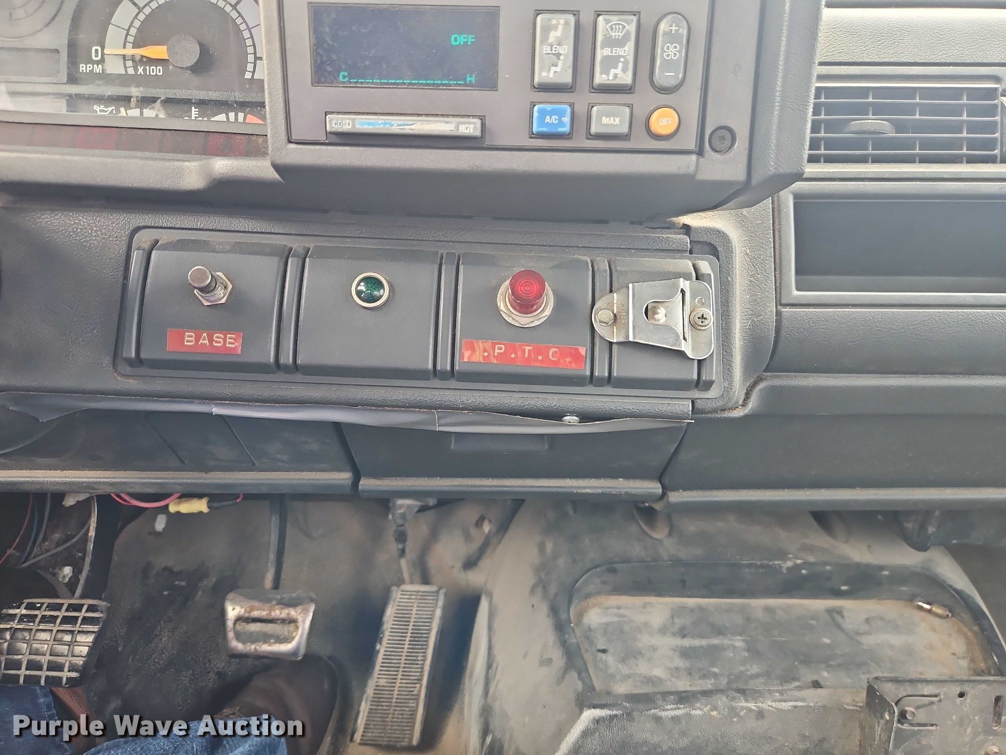 2000 GMC C7500 crane truck. Miles: 137,300 on odometer, VIN: 1GDL7H1C6YJ504215. Engine Caterpillar 3126, Displacement: 7.2L, Cylinders: 6, Fuel type: Diesel. Transmission Manual, Speed: 6. Chassis Axles: Single, Suspension: Spring, Brakes: Hydraulic, PTO, GVWR: 32,000 lbs FAWR: 11,000 lbs, RAWR: 21,000 lbs. Interior AC, Heat, Cruise control. Features Flatbed 12' L x 94" W, Crane Tulsa, Boom Telescopic, Sections: 3, Boom controls Ground, Crane ball & hook. Tires Size: 11R22.5. Notes Non-operational AC, Dash warning indicator: ABS. Missouri title. Title distribution may be delayed up to 30 days from verification of funds. MFA Oil Company. Nevada, MO 64772