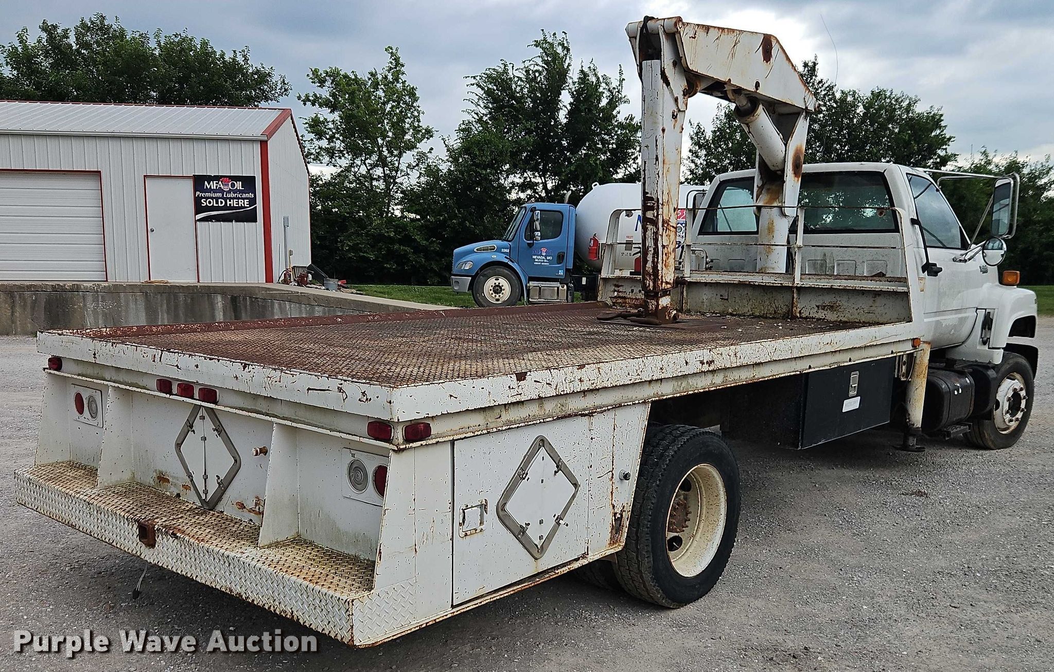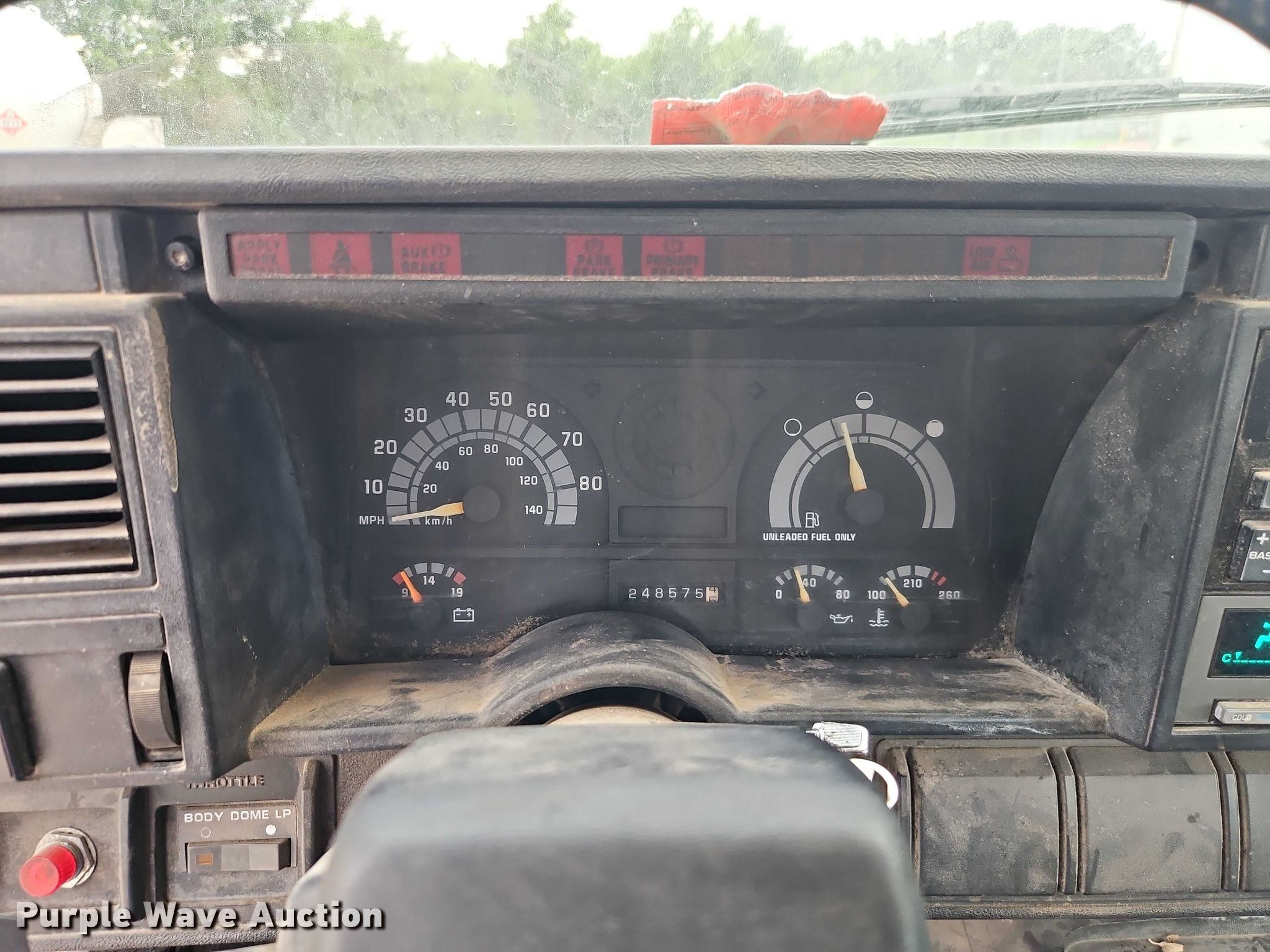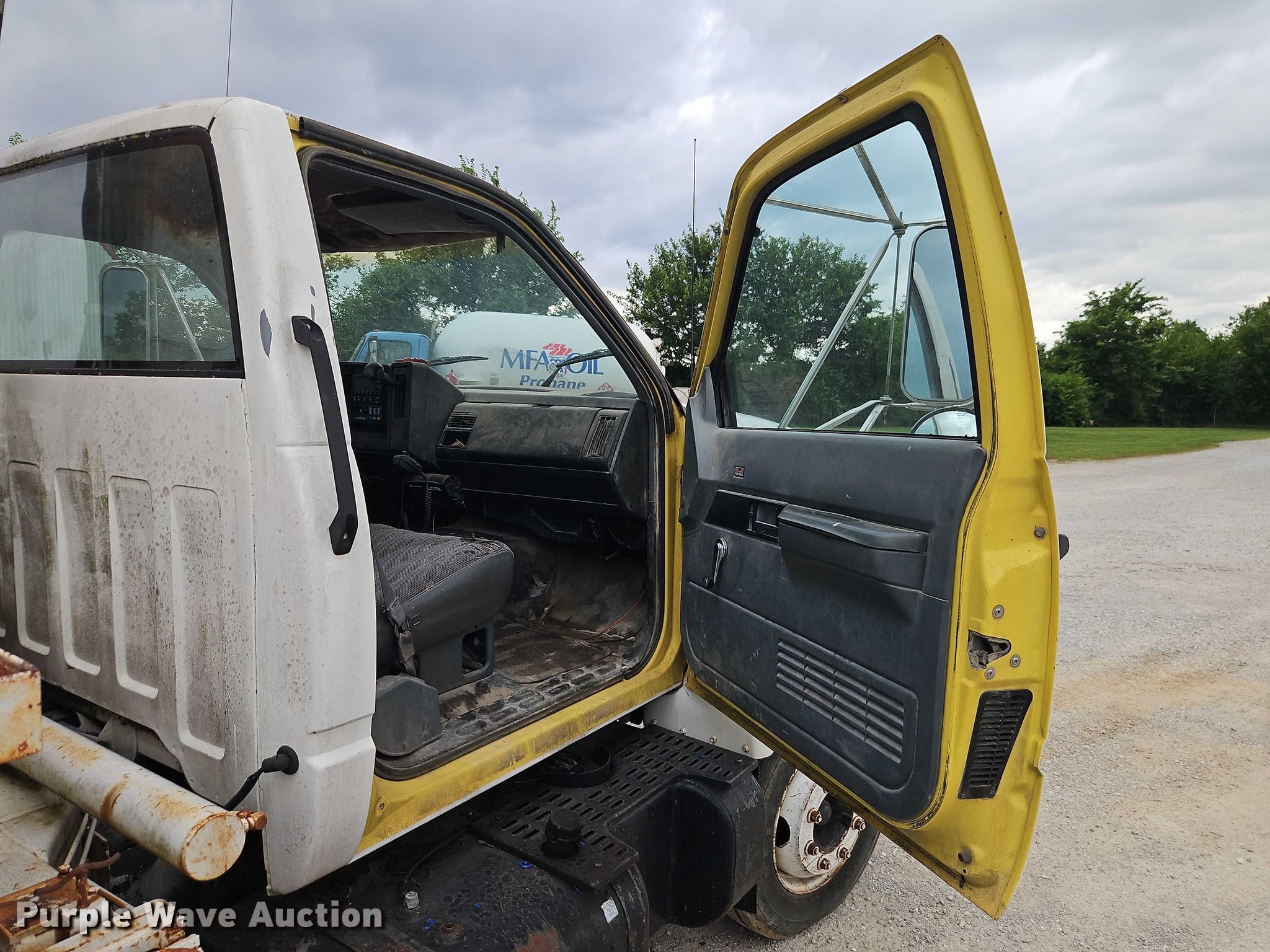 1992 GMC Topkick C5500 crane truck. Miles: 248,575 on odometer, VIN: 1GDJ6H1P3NJ507291, Unit #: 1687. Engine GM 366, Displacement: 6.0L, Cylinders: 8, Fuel type: Gas. Transmission Automatic. Chassis Axles: Single, Suspension: Spring, Brakes: Hydraulic, PTO, GVWR: 23,900 lbs FAWR: 7,000 lbs, RAWR: 16,900 lbs. Interior AC, Heat, Cruise control. Features Flatbed 15' L x 96" W, Crane Boom Knuckle, Boom controls Ground.. Tires Size: 245/70R19.5. Missouri title. Title distribution may be delayed up to 30 days from verification of funds. MFA Oil Company. Nevada, MO 64772