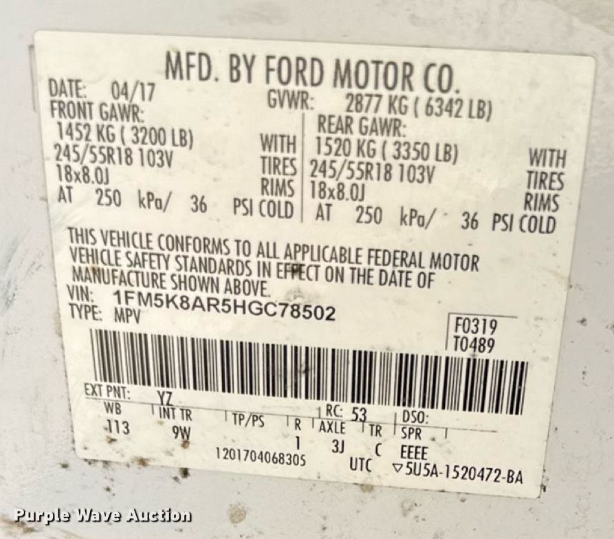 Purple Wave is selling a used Passenger Vehicle in Kansas. This item is a 2017 Ford Explorer Police Interceptor SUV with the following: Miles: 88,980 on odometer, Hours: 14,657 on meter, VIN: 1FM5K8AR5HGC78502