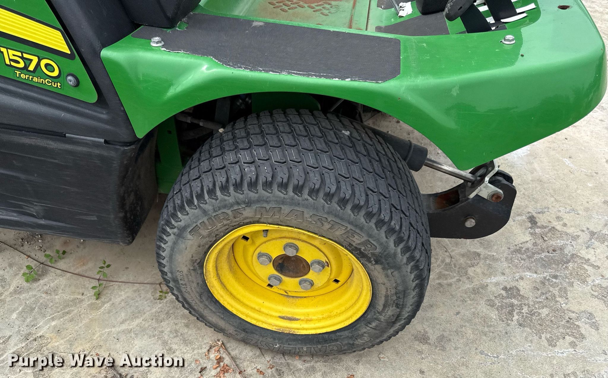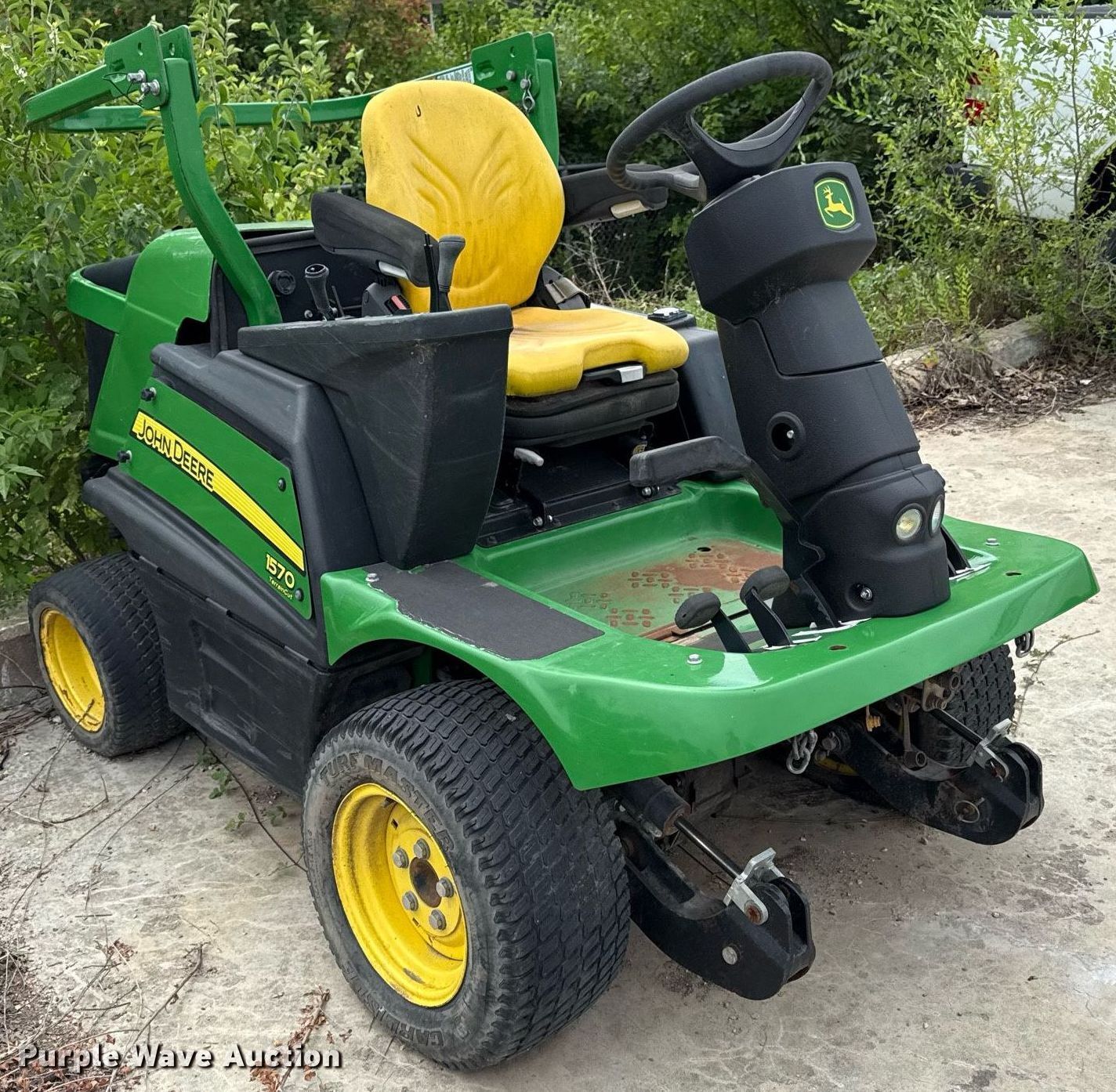 John Deere 1570 ZTR lawn mower. Engine. Cylinders: 3, Fuel type: Diesel. Transmission Hydrostatic. Tires Front: 23x10-12, Rear: 18x8.50-10. Notes Parts may be missing, Non-operational unit. City of Lawrence. Lawrence, KS 66044