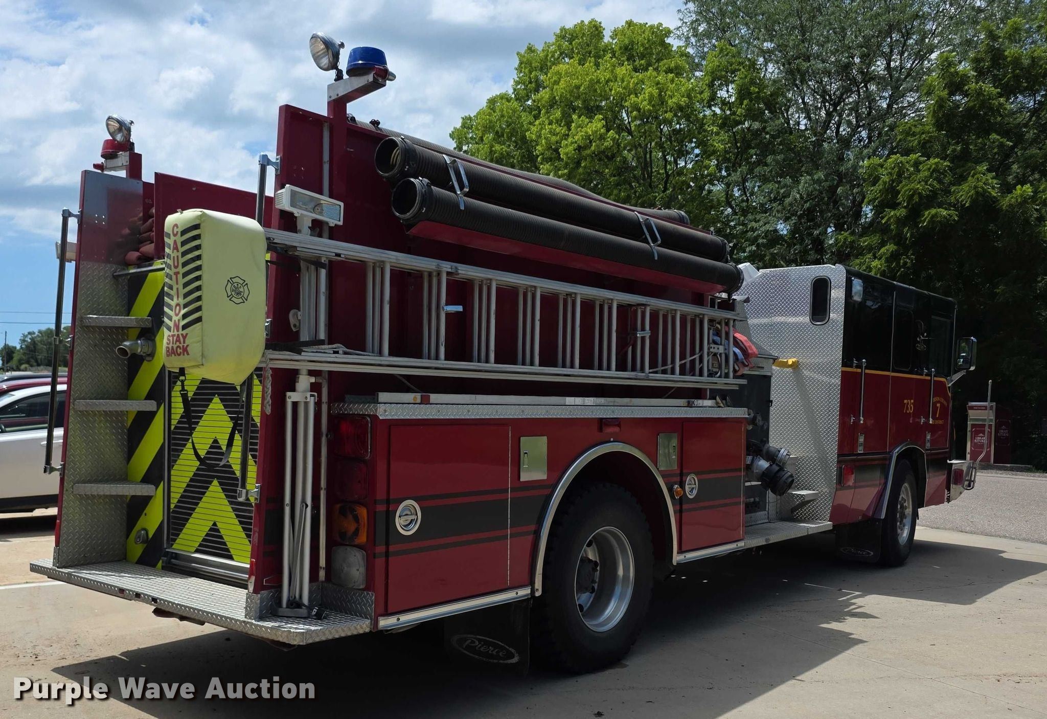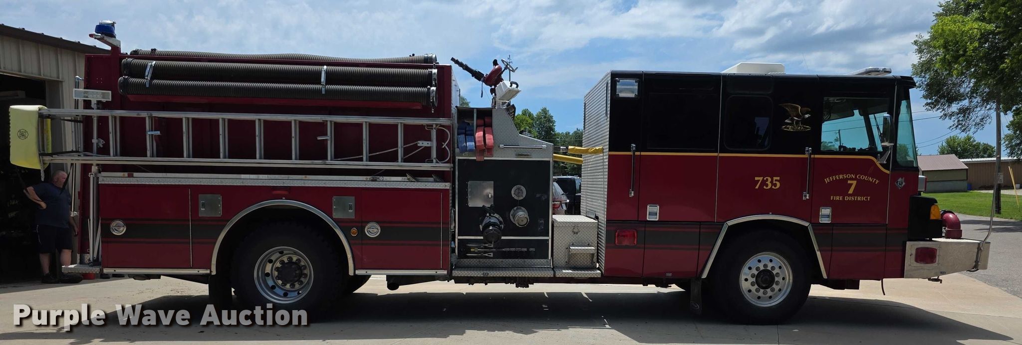Purple Wave is selling a used Fire Truck or Emergency Vehicle in Kansas. This item is a 1995 Pierce Quantum pumper fire truck with the following: Miles: 101,777 on odometer, Hours: 6,985 on meter, Hours: 2,909 on second meter, Miles or hours may vary, unit still in use, VIN: 4PICT02S8SA000173, Unit #: 735