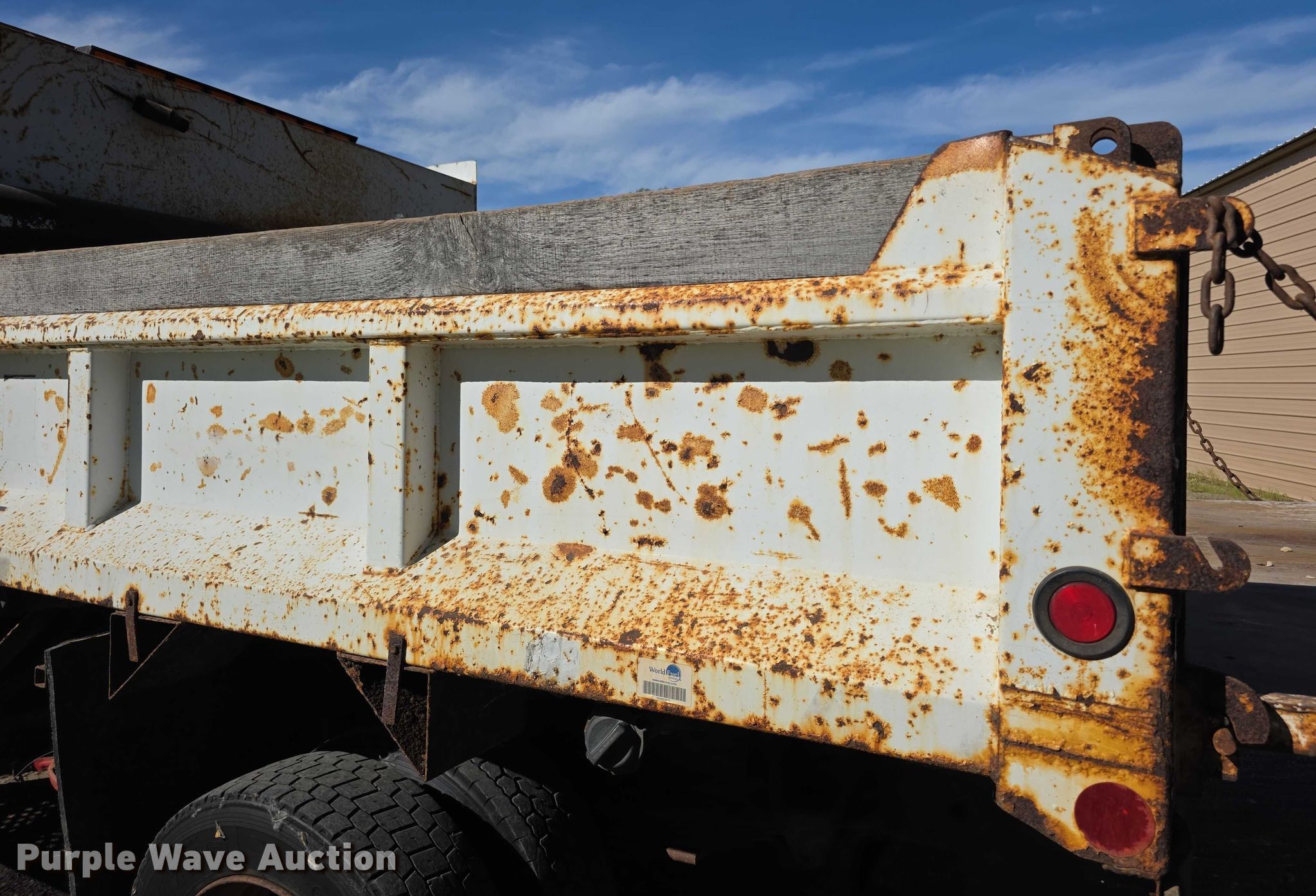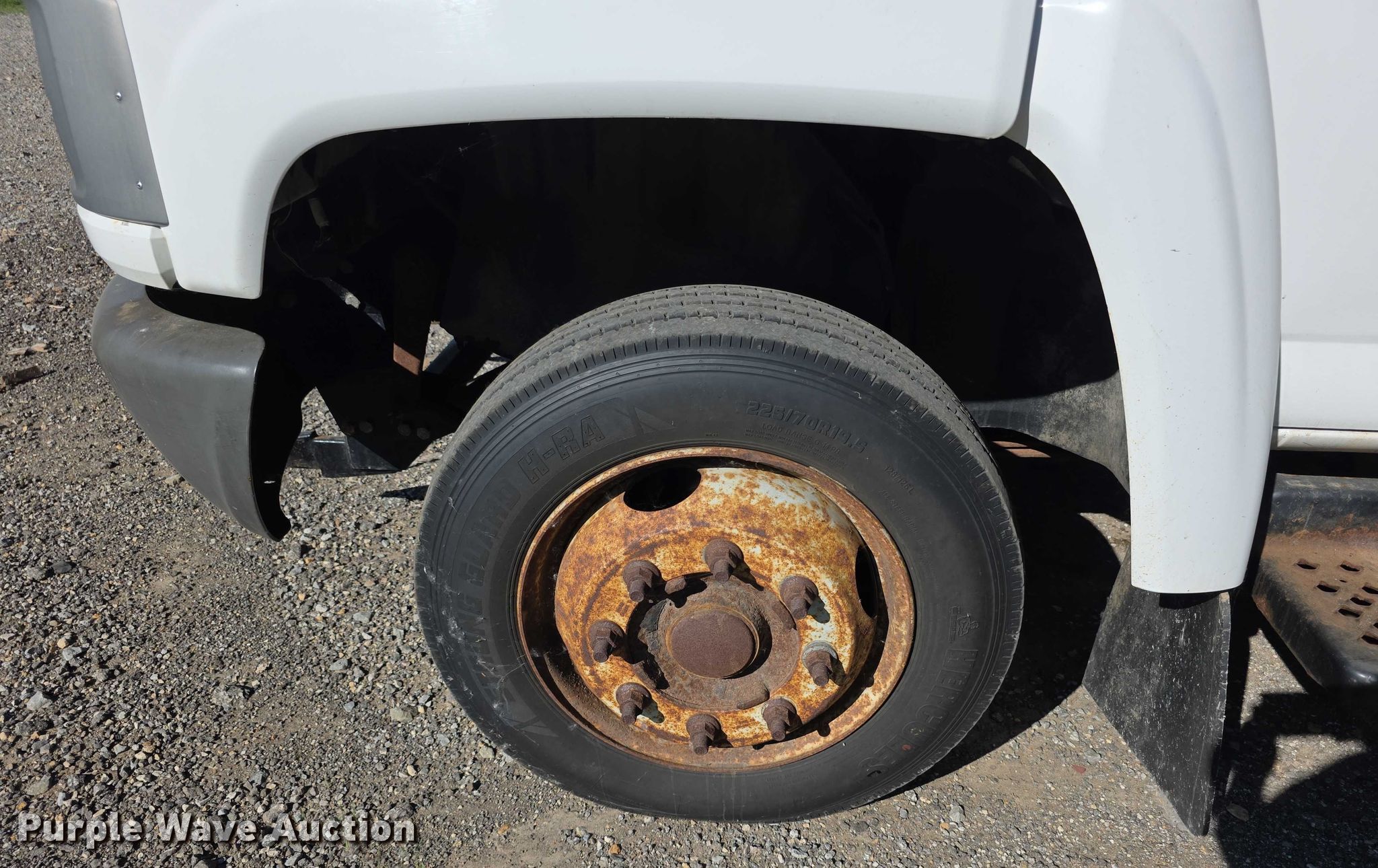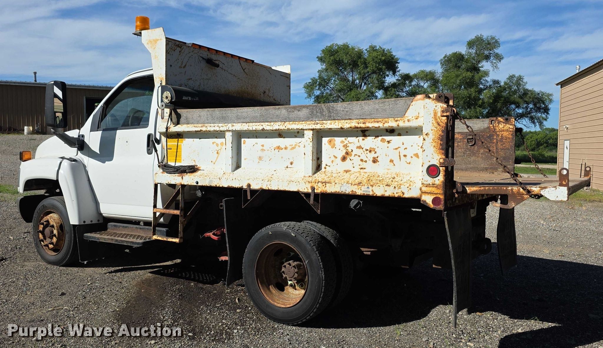 2004 GMC C5500 dump truck. Miles: 167,988 on odometer, VIN: 1GDE5C1E94F518996. Engine Displacement: 8.1L, Fuel type: Gas. Transmission Automatic. Chassis Axles: Single, Suspension: Spring, Brakes: Hydraulic, PTO, GVWR: 19,500 lbs FAWR: 7,000 lbs, RAWR: 13,500 lbs, Wheelbase: 128". Features Dump bed Heil, 9' L x 8' W, Side height: 18", Side board height: 6", Bed type: Steel, Roll tarp, Ram: Single, End gate: Manual. Tires Size: 225/70R19.5. Notes Windshield chipped or cracked. Kansas title. Title distribution may be delayed up to 14 days from verification of funds. Ozawkie, KS 66070