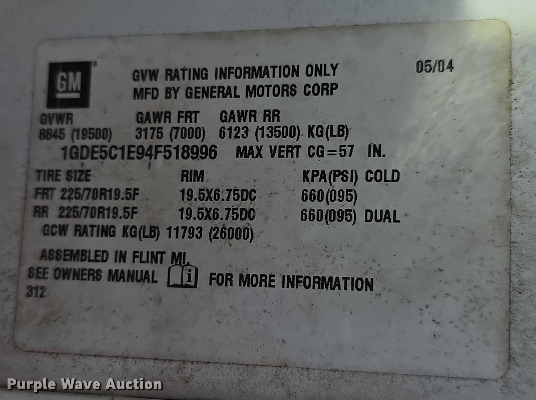 Purple Wave is selling a used Construction Dump Truck in Kansas. This item is a 2004 GMC C5500 dump truck with the following: Miles: 167,988 on odometer, VIN: 1GDE5C1E94F518996