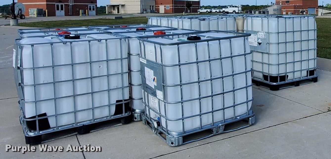 Purple Wave is selling a used Tanks in Kansas. This item is a (12) poly totes with the following: (7) 250 gallon capacity, (5) 300 gallon capacity