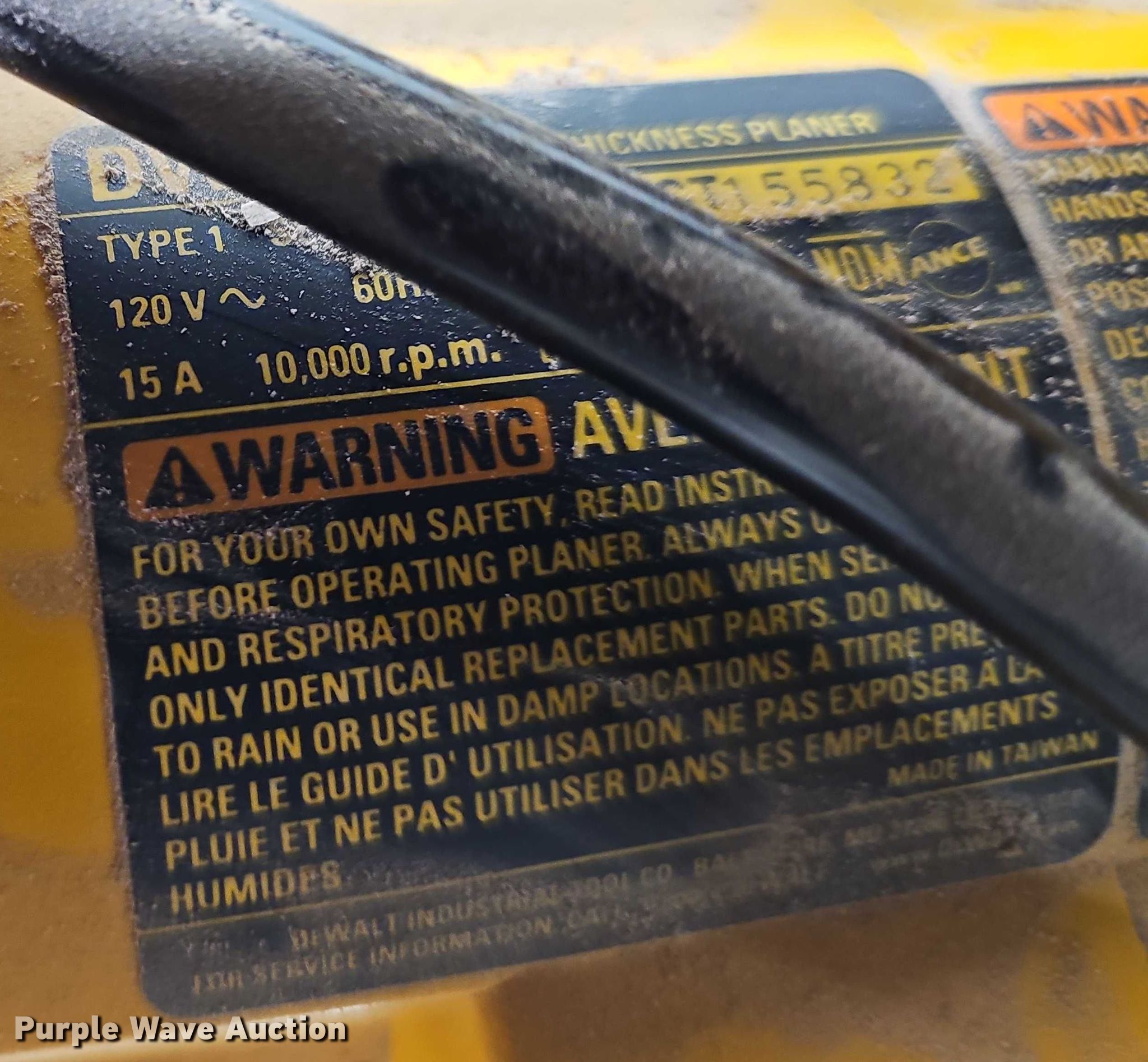 Purple Wave is selling a used Woodworking Equip. in Nebraska. This item is a Dewalt planer with the following: Width: 12.5", Volts: 120